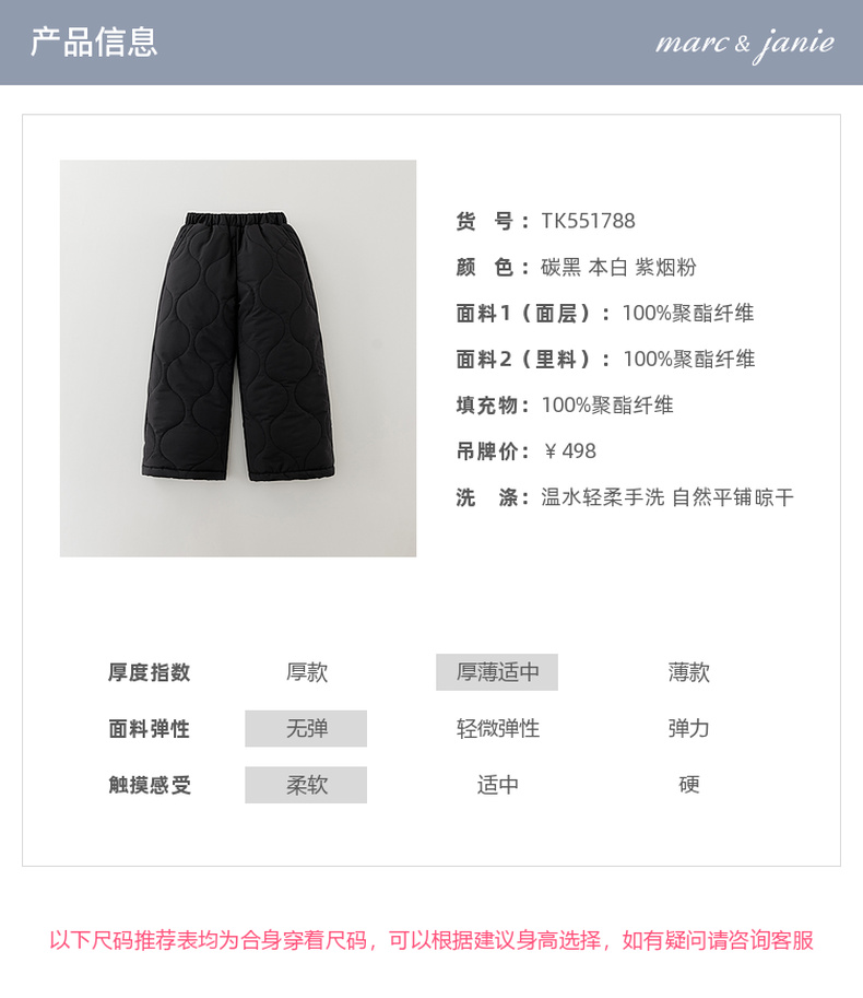 【杜邦棉】马克珍妮女童轻盈保暖云朵棉裤2025年冬装新款551788