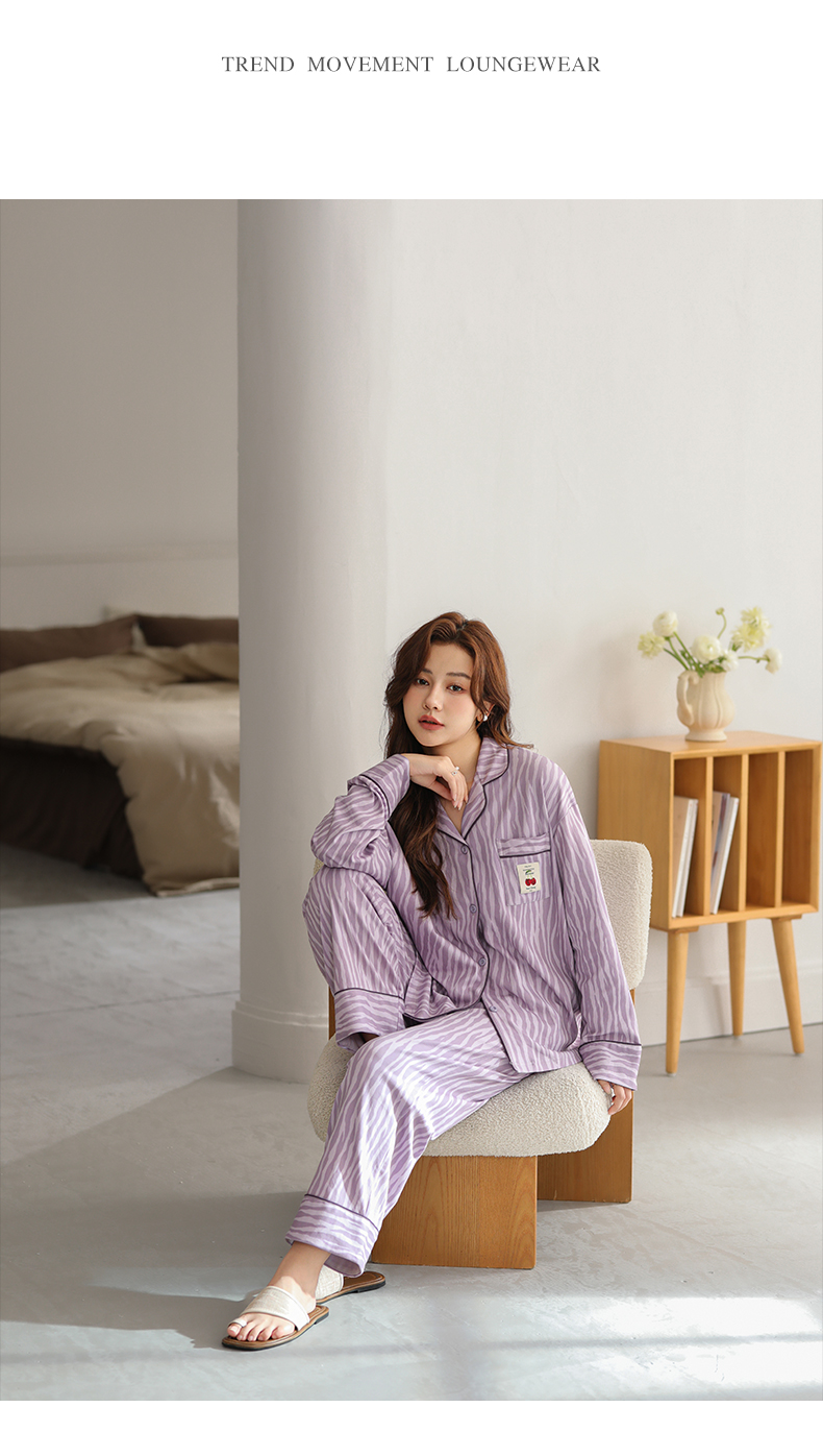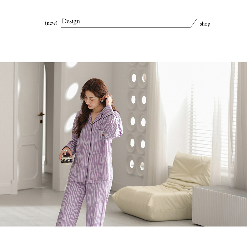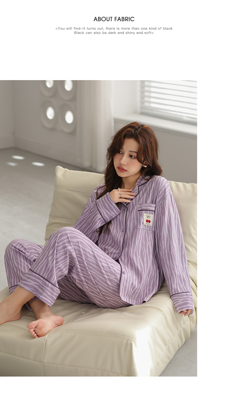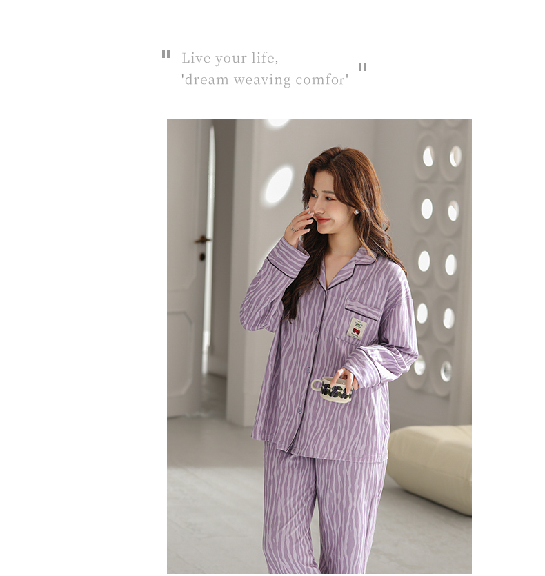 可人儿小众设计师新款奥力绵女士睡衣春秋长袖时尚可外出家居服