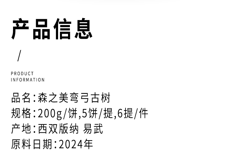 2024 弯弓古树 森之美 普洱茶 生茶 200g/饼