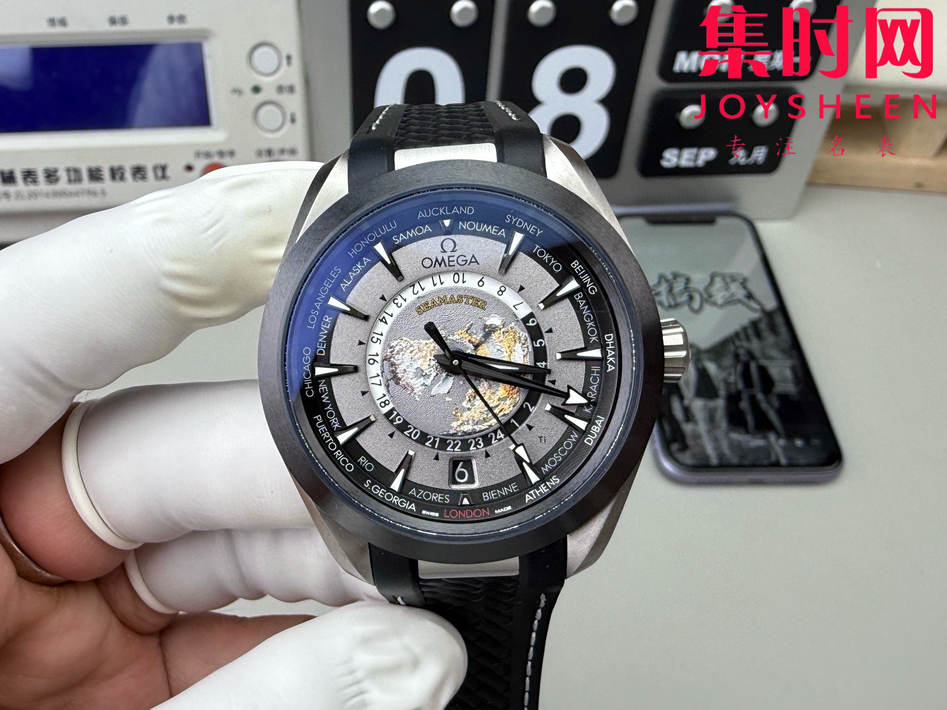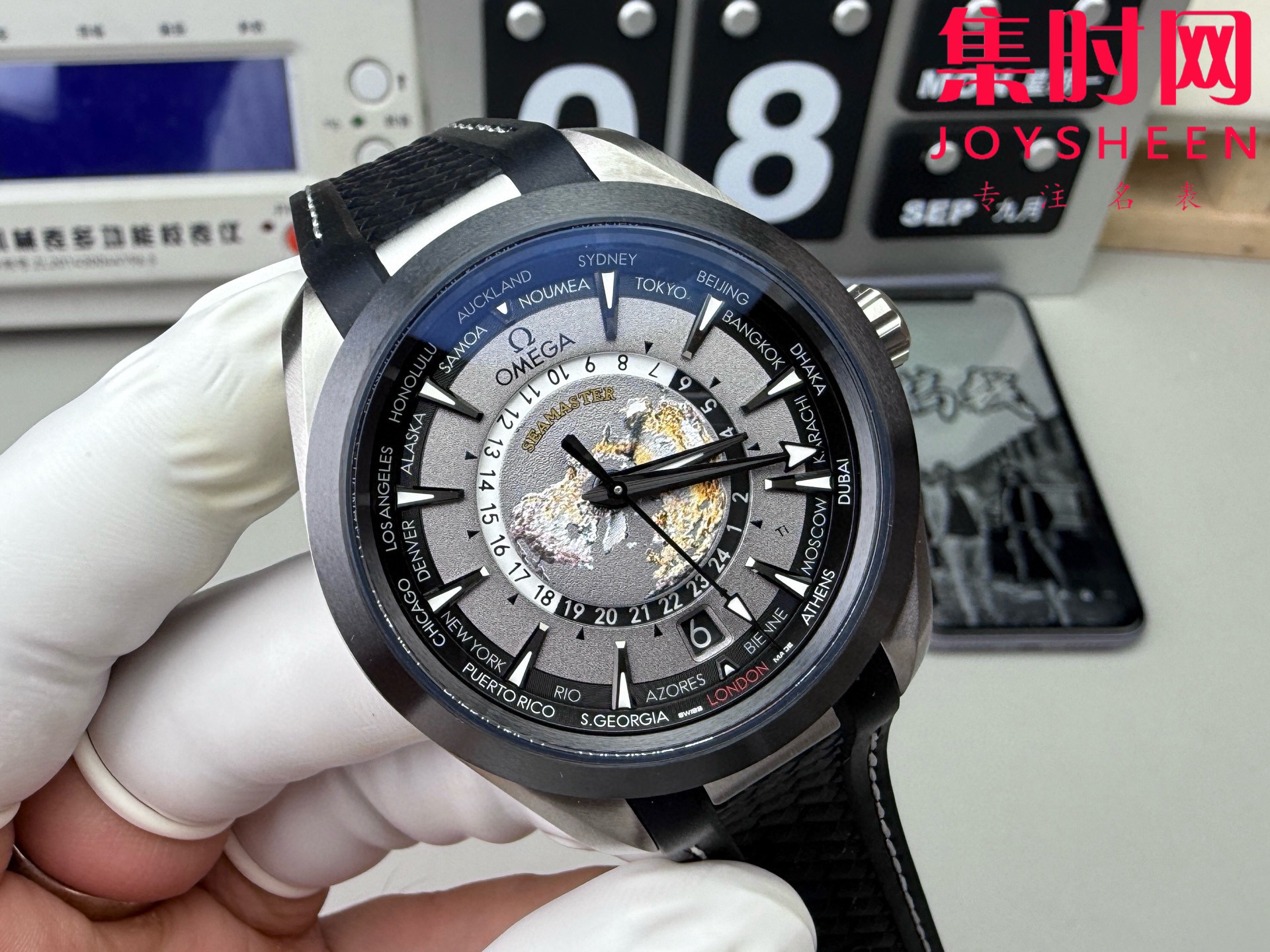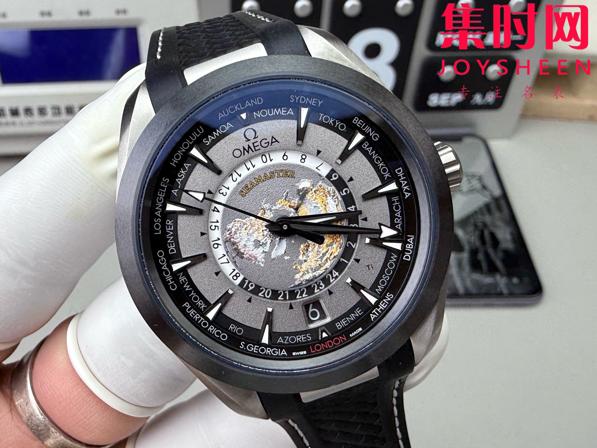 VS欧米茄新款海马世界时系列 VS海马世界时钛壳 钛海马 海马世界时黑色款 男士腕表 表径43mm Aqua Terra 世界时腕表。一款可以戴着环游世界的世界时腕表,激光烧蚀蓝色海洋,陆地浮雕勾勒,24小时hesalite水晶环。辽阔世界尽在掌握,于方寸之间伴您开启环球之旅!搭载VS定制Cal.8938多功能全自动机械机芯,蓝宝石水晶镜面,钛金属表壳,陶瓷圈口,定制橡胶表带,原装折叠扣,功能同步原装真实可用!表径43mm