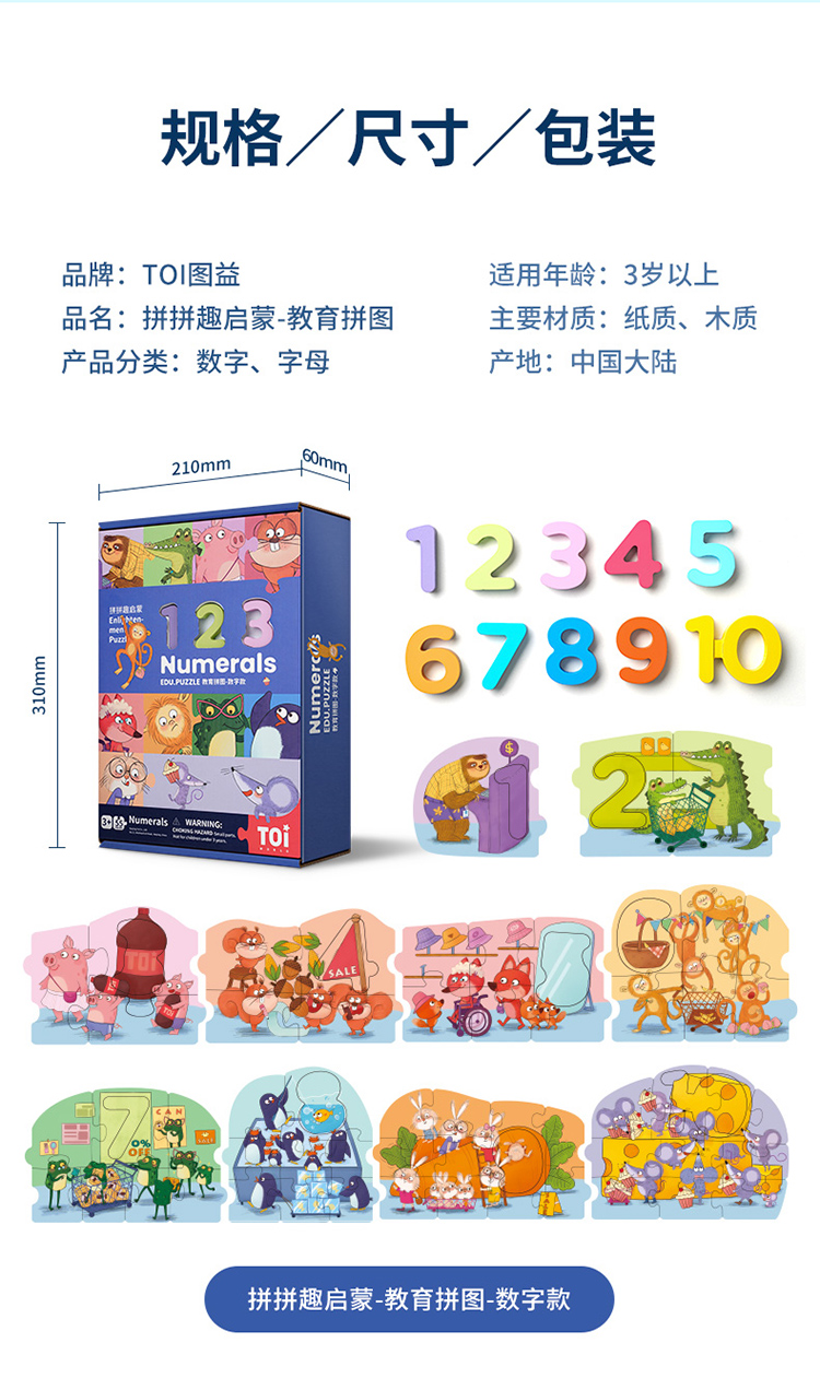 TOI图益拼拼趣启蒙早教木制数字拼图