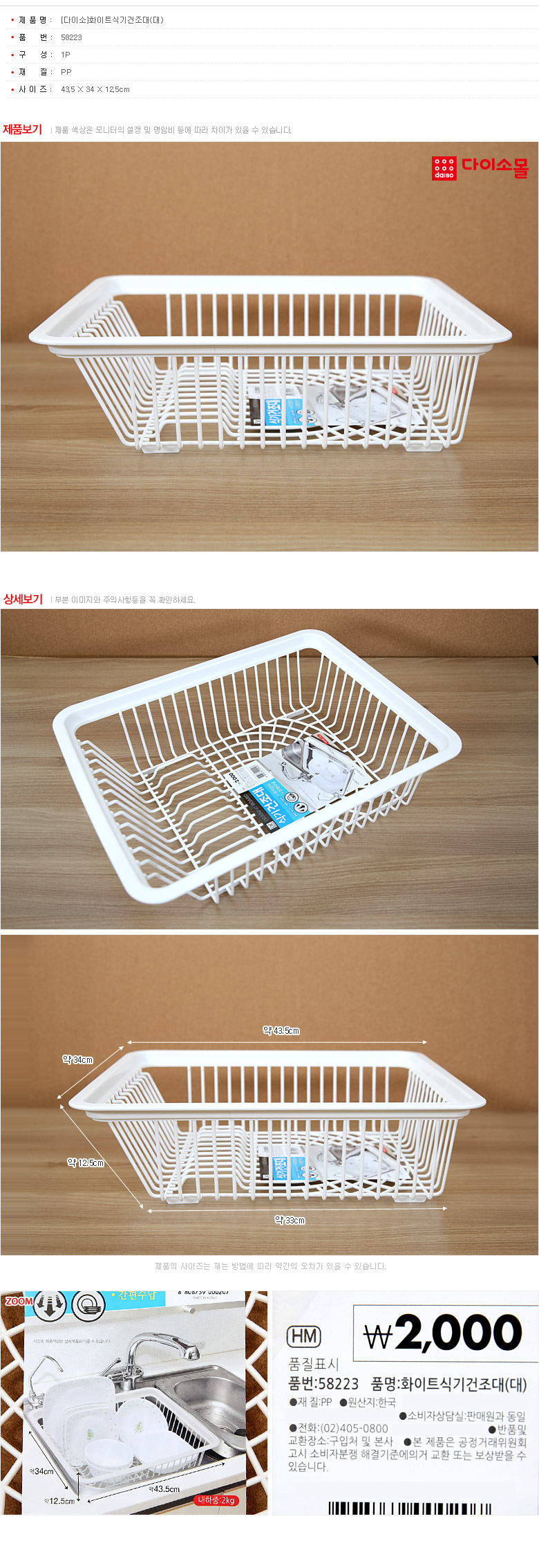 大创白色盘子碗置物架沥水架(大)-58223 Daiso Drain basketJPY带授权招加盟代理
