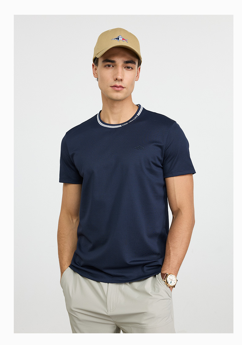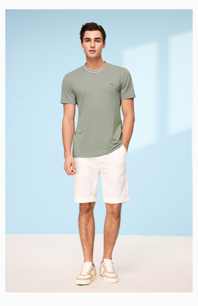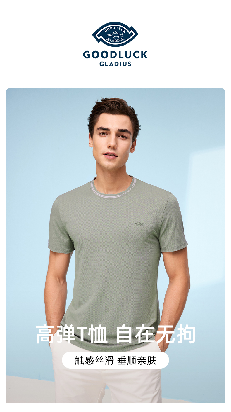 【高弹】德鲨灰色短袖圆领T恤男2026夏季新款休闲百搭上衣打底衫