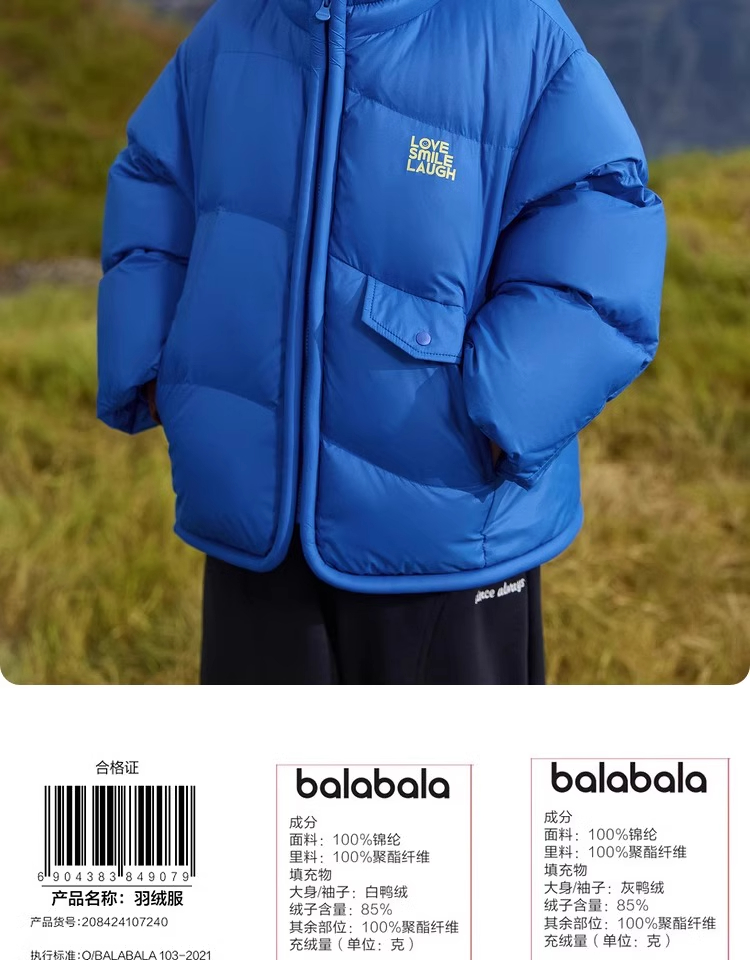 【爆品主推】巴拉巴拉童装儿童羽绒服男童女童面包服冬装新款立领外套印花【巴拉巴拉专场】