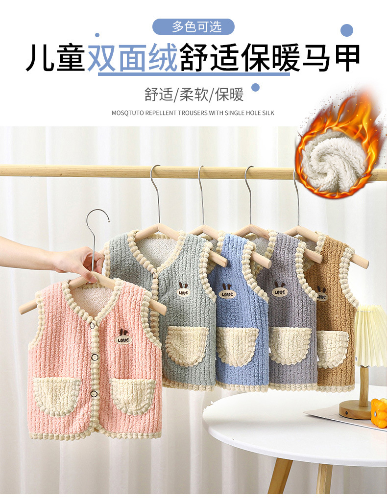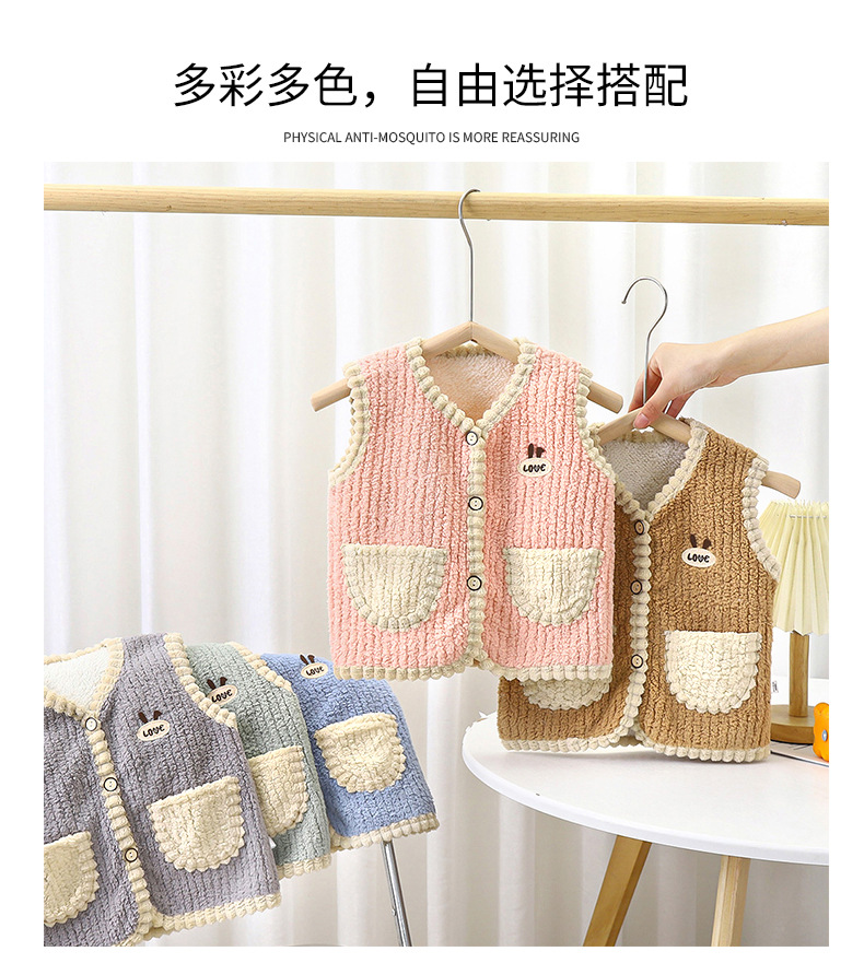【清仓捡漏39元/2件】儿童马甲春秋韩版,优雅简洁。男女泡芙绒马甲厚兜舒适保暖,温暖舒适的泡芙绒材质,精致韩版设计,宝宝坎肩设计,轻松穿脱-lish#异业福利