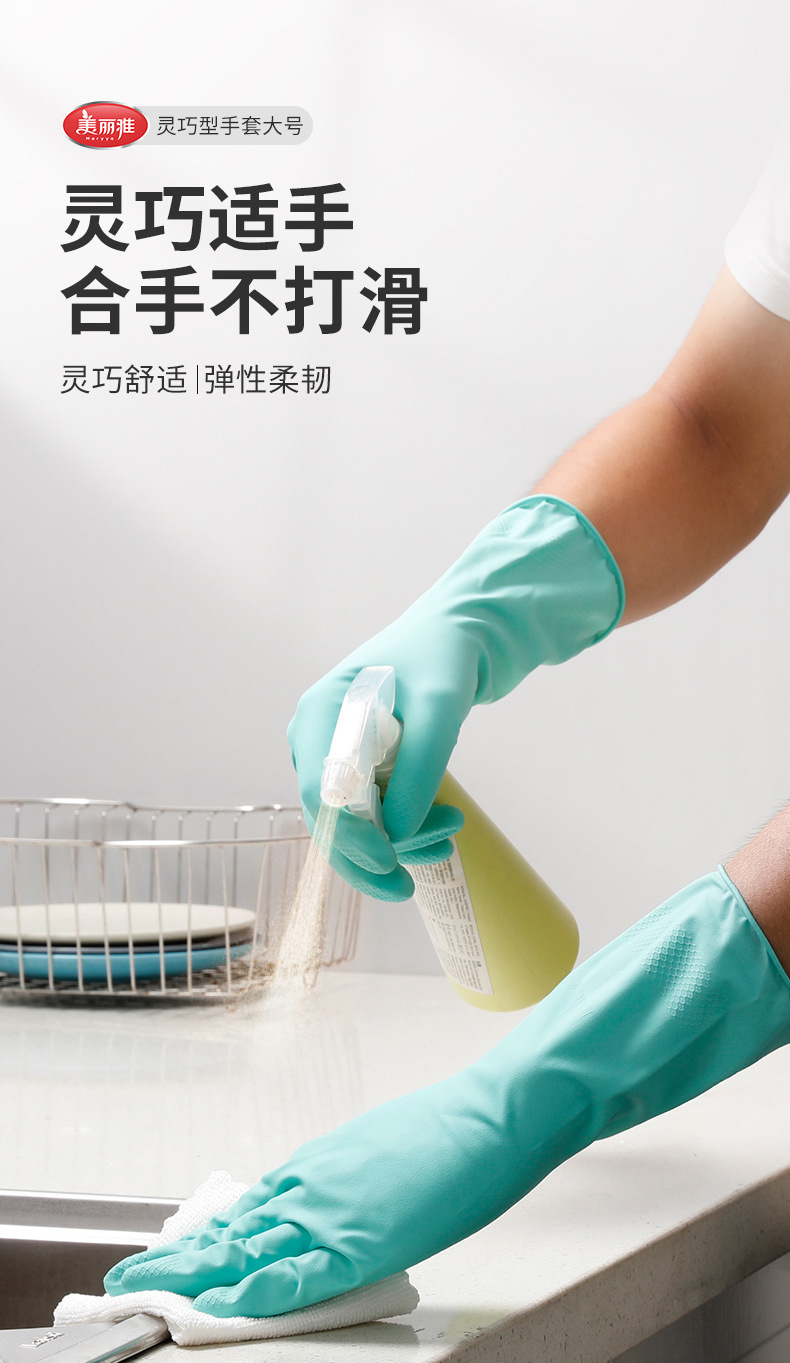 【批发】美丽雅灵巧强韧家务手套耐用厨房卫生手套颜色随机 1双/包