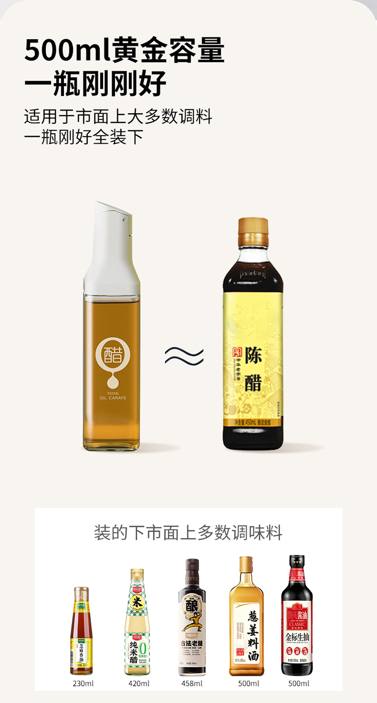 美丽雅油酱醋玻璃瓶调料品油壶精准控量家用调味瓶不挂油防漏保鲜