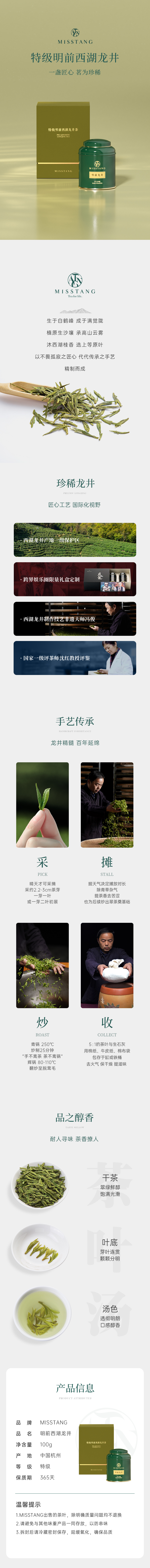 【特级龙井】MISSTANG御唐 手工明前西湖龙井茶(特级、狮峰山脉一级产区白鹤峰)100g
