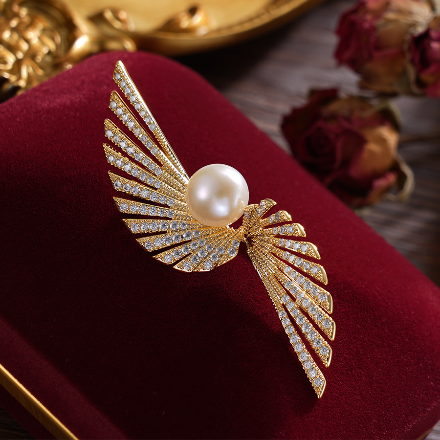 子佩集珍珠胸针【XXXZ222】羽扇翅膀镀金2410