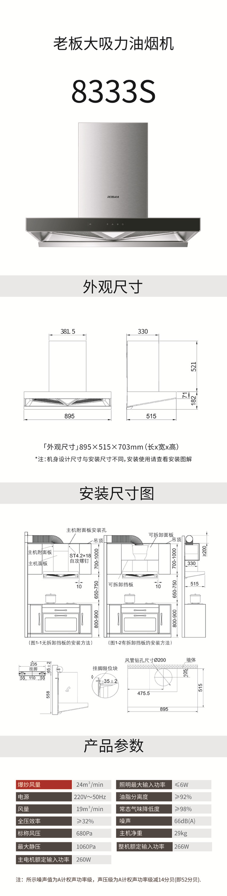老板 (Robam )24立方大吸力 1060Pa风压 免拆洗大吸力油烟 CXW-260-8333S