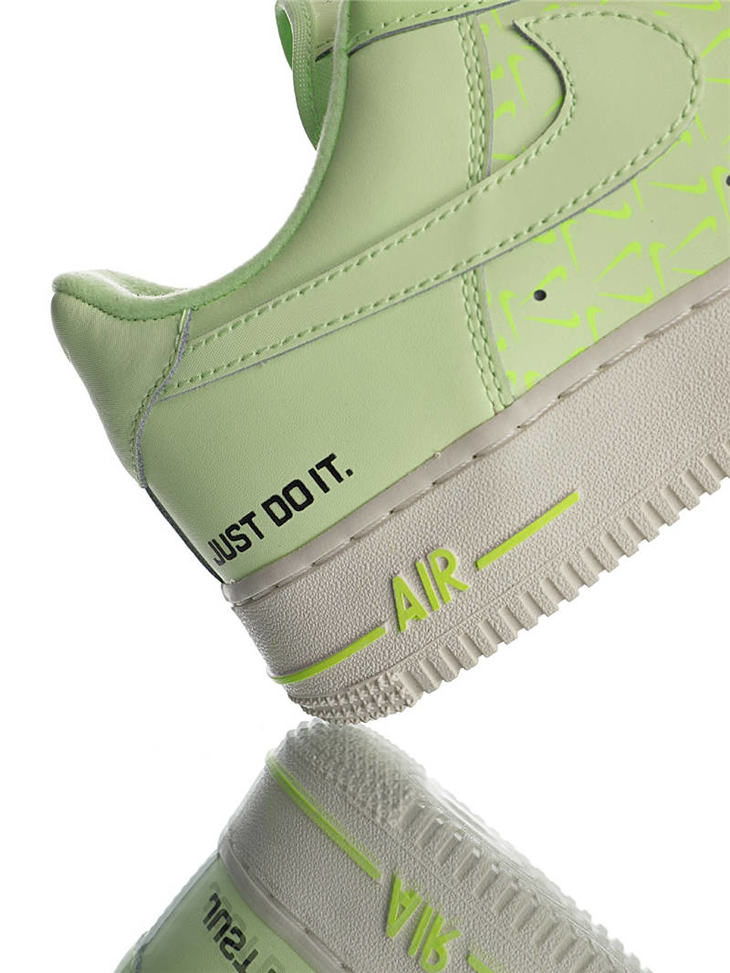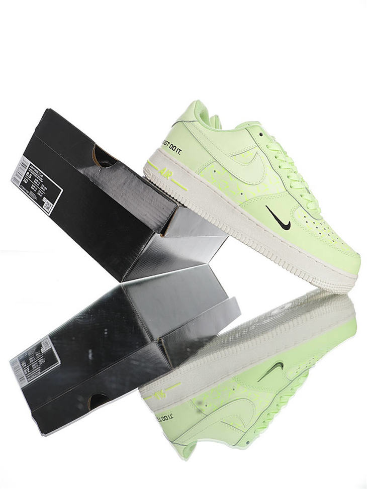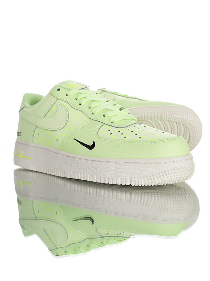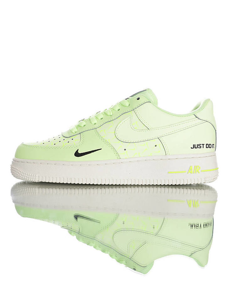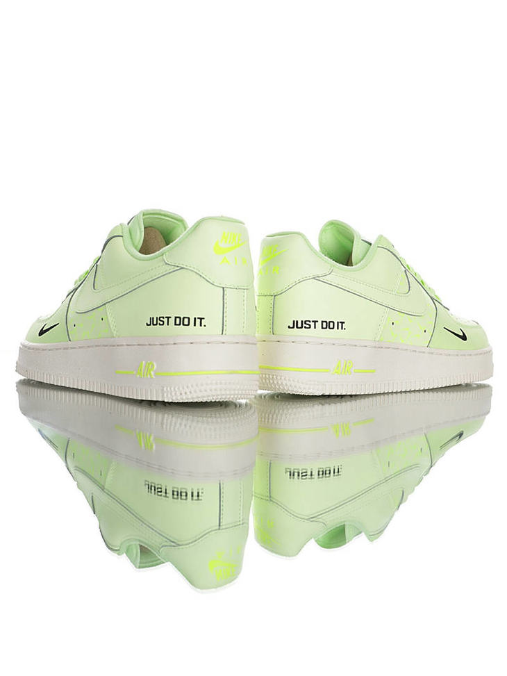 耐克 Nike Air Force 1 07 "Just Do It" 春夏新款 采用磨砂移膜皮革 内置全掌气垫 空军一号 皮革荧光浅绿黑双钩配色