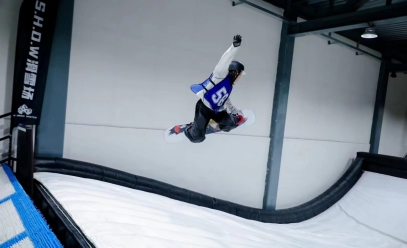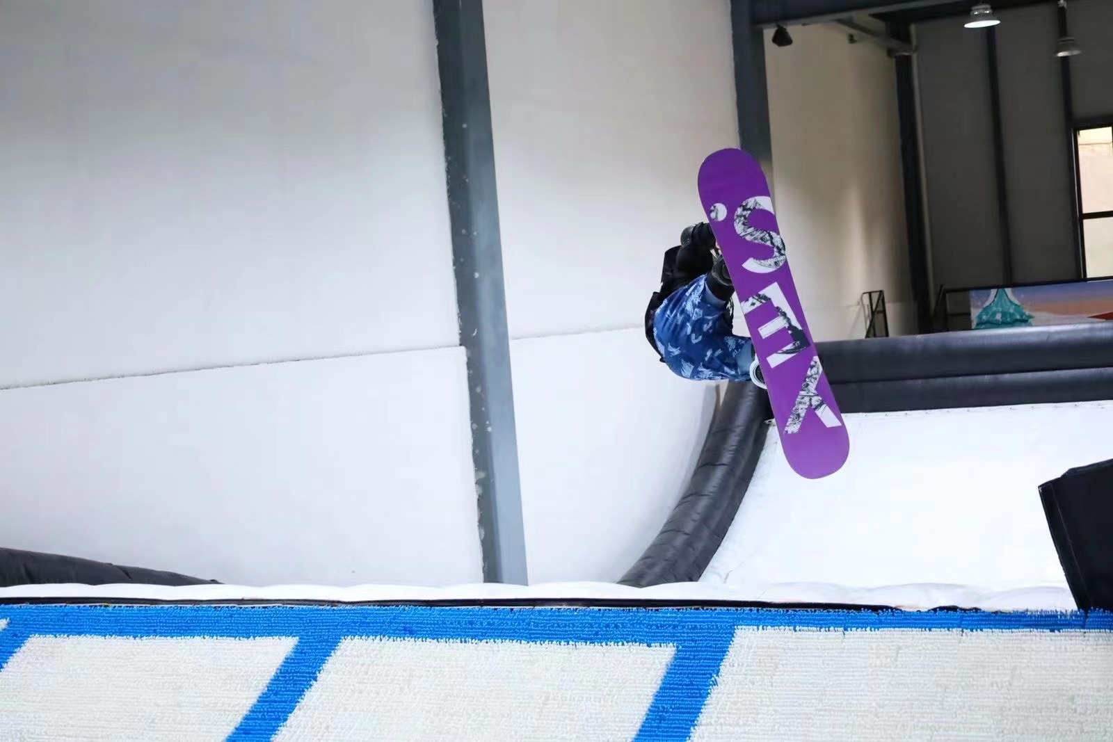 雪场配置:滑雪模拟机、初中级滑行、气垫大跳台、公园道具、平花训练