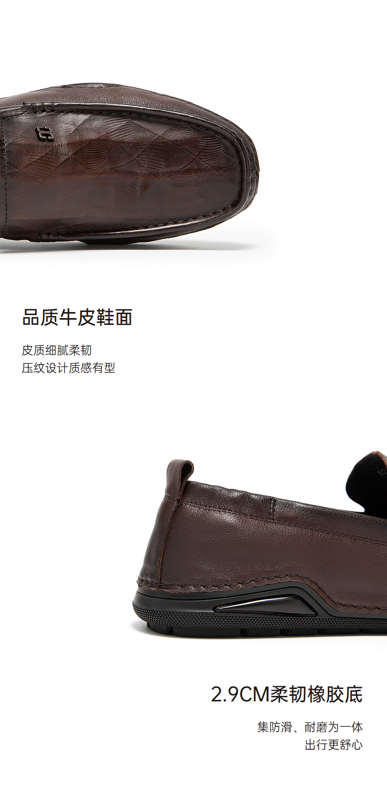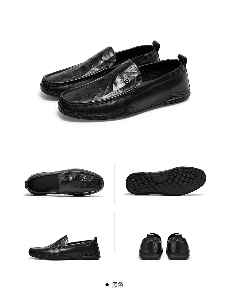 千百度男鞋秋季男士商务休闲皮鞋质感牛皮英伦风豆豆鞋A24417015
