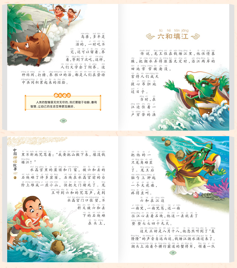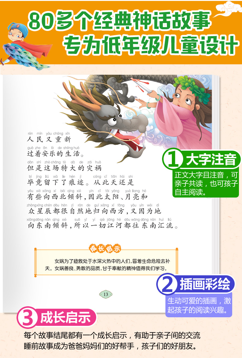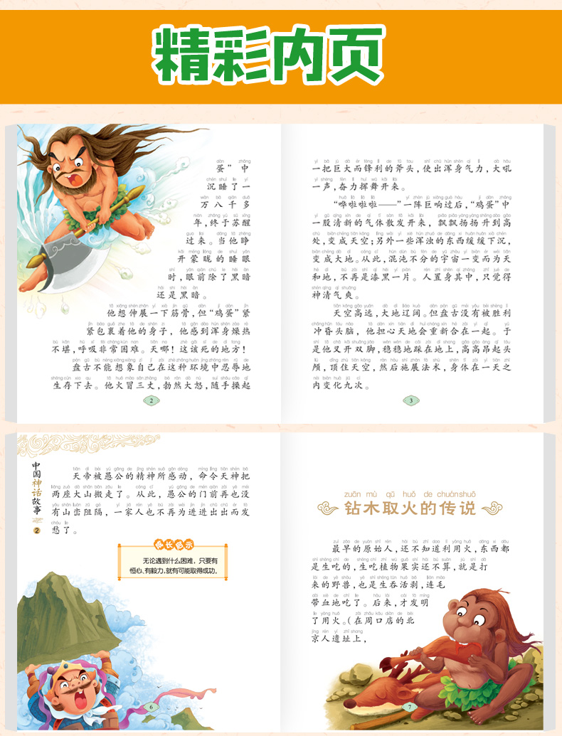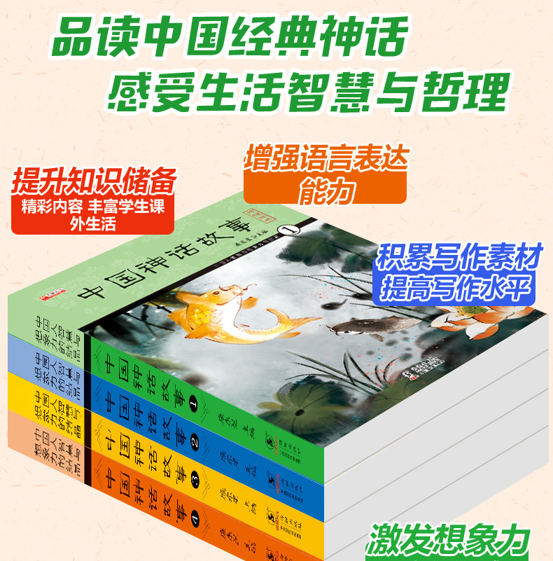 中国古代神话故事注音版全套4册正版小学生课外阅读书籍一年级二年级三年级必读书小学精选绘本6-12周岁故事书带拼音1-2-3儿童读物
