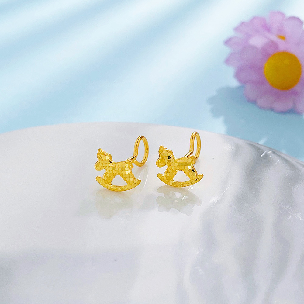 【限时克减150元】足金999 #卡通 #CNC 5G黄金实心童趣鱼鳞木马马上有钱黄金摇摇马耳饰耳钉(AG5GES00285)(预售产品下单后不退款不退货不换货不补差价)