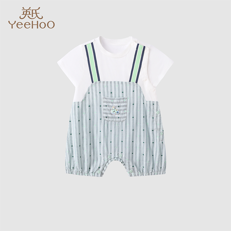 英氏男宝宝假两件哈衣夏季透气婴儿连体衣2024新款爬服夏装YRHBJ2Q210A