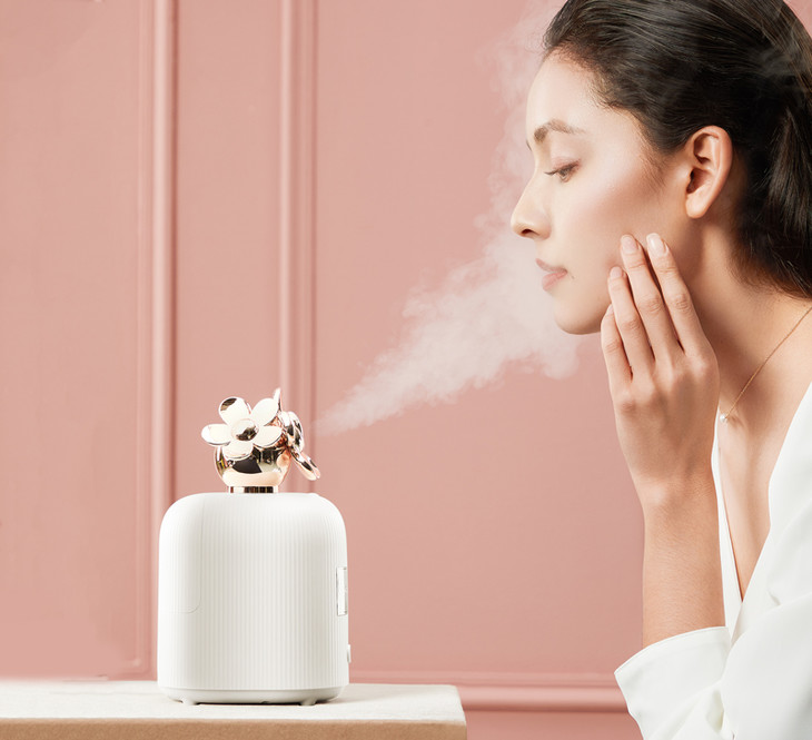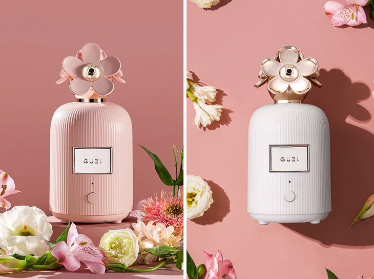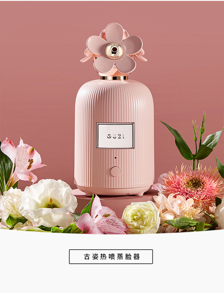喷头打破了传统的蒸脸仪设计,用浪漫的皱菊花朵装扮一新,很别致。