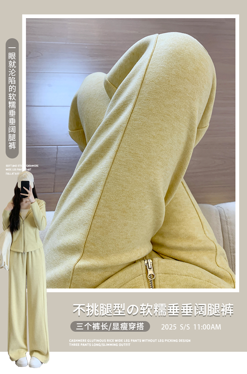 黄色垂垂阔腿裤女2026春冬季小个子高腰直筒慵懒垂感休闲米妮糯米裤聚★为爱严选