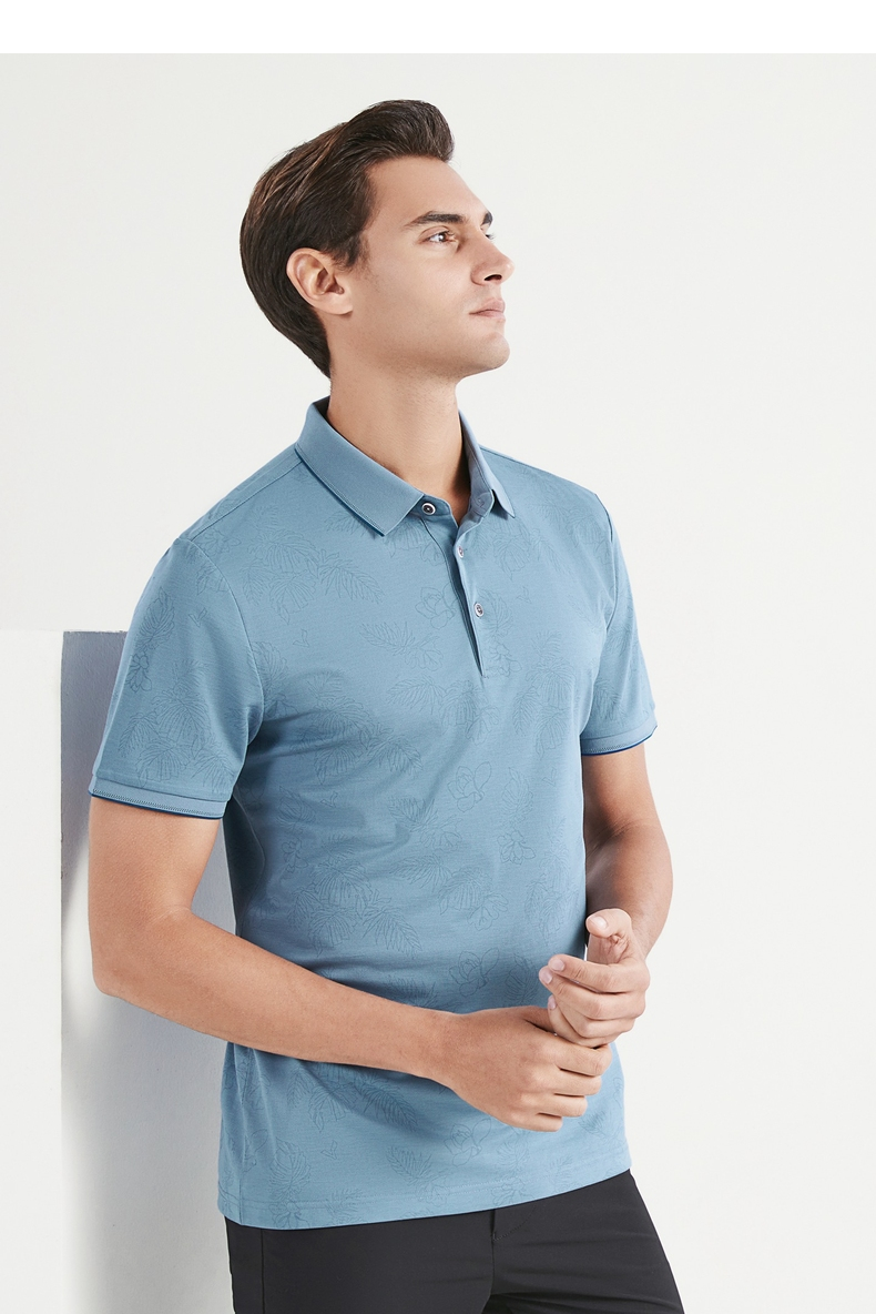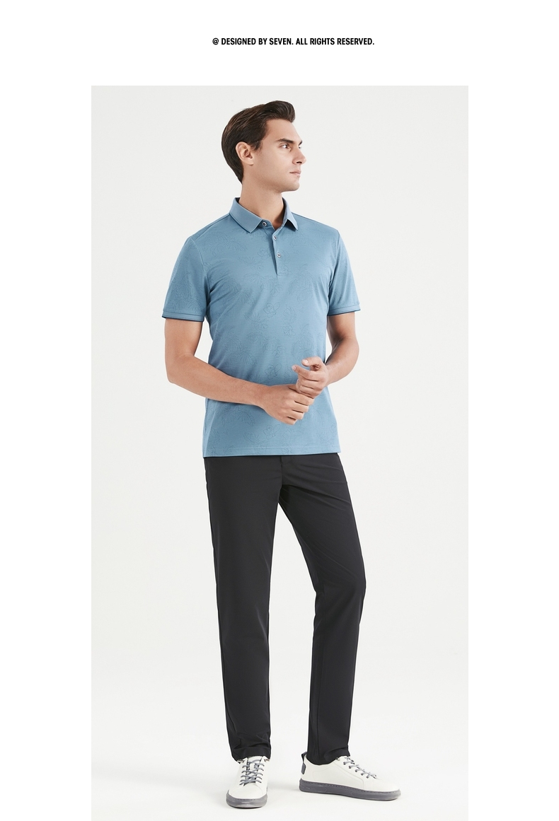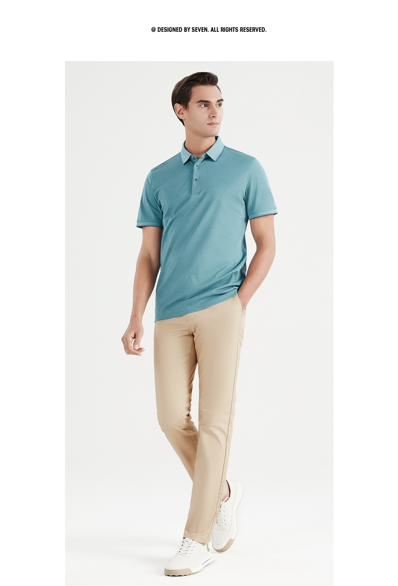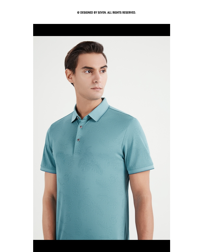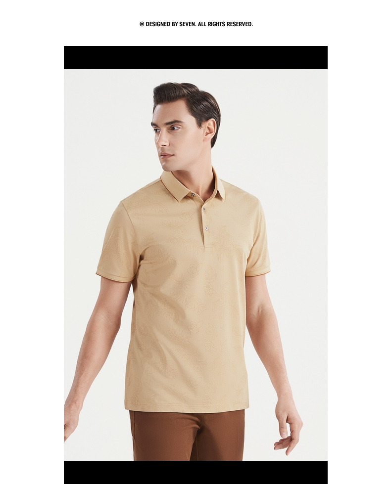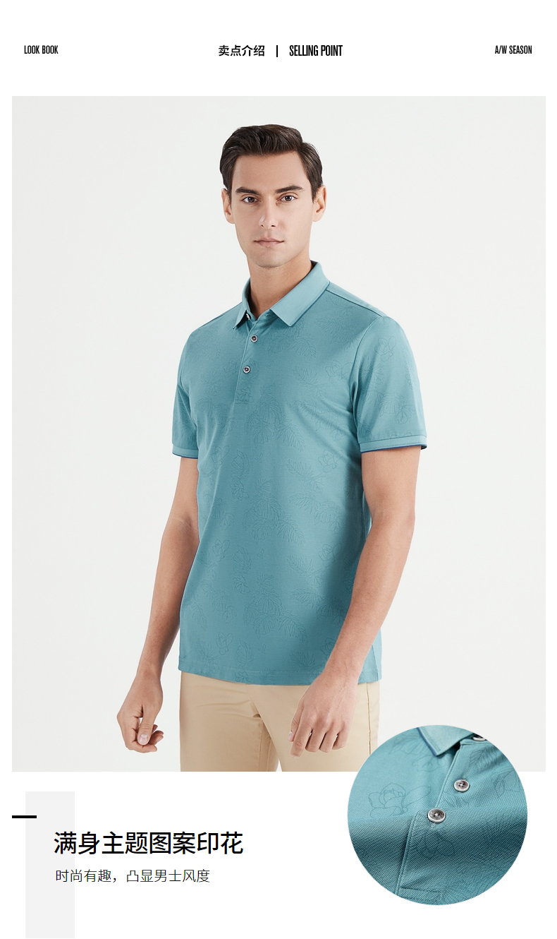 【丝光】柒牌短袖polo衫男满身植物印花男士翻领T恤上衣122T72060