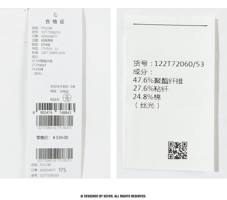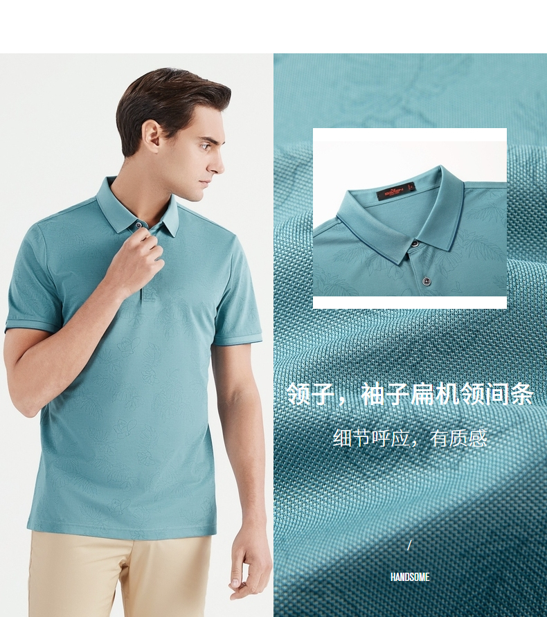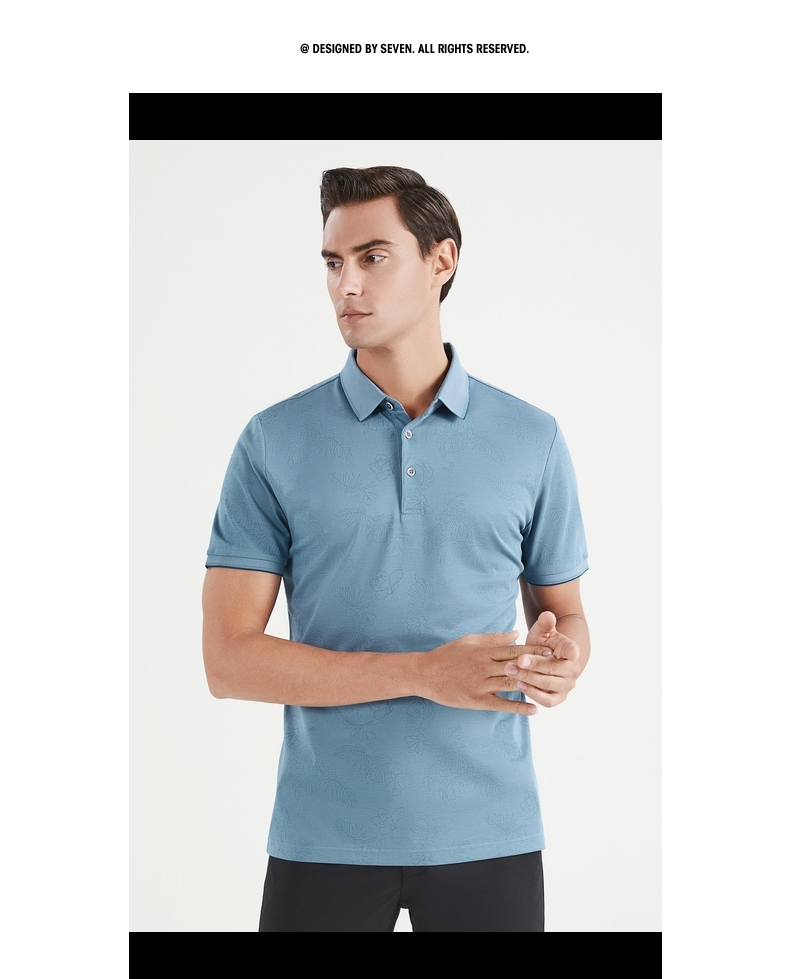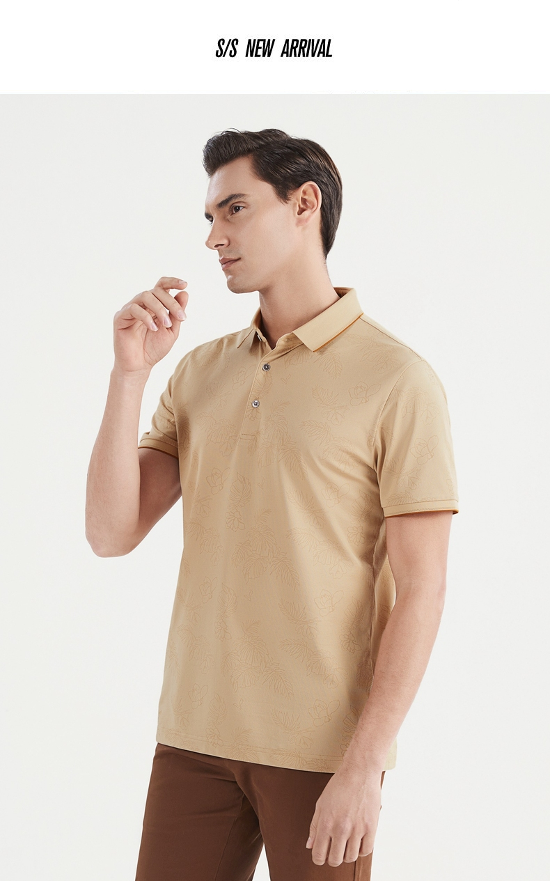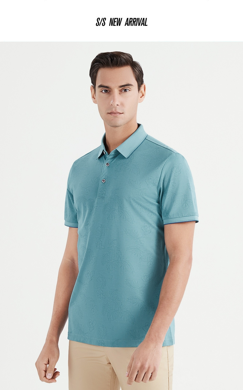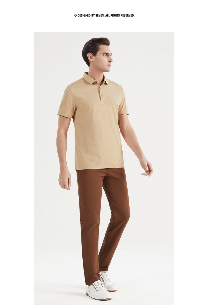 【丝光】柒牌短袖polo衫男满身植物印花男士翻领T恤上衣122T72060