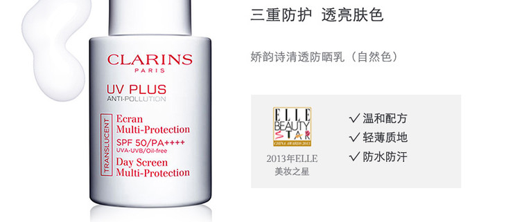 【春日福利】CLARINS 娇韵诗清透防晒乳SPF50 透明色 UV Plus