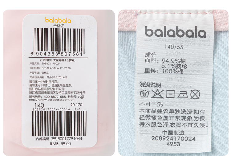 巴拉巴拉女童内裤棉平角儿童三角短裤小童宝宝萌不夹PP亲肤三条装