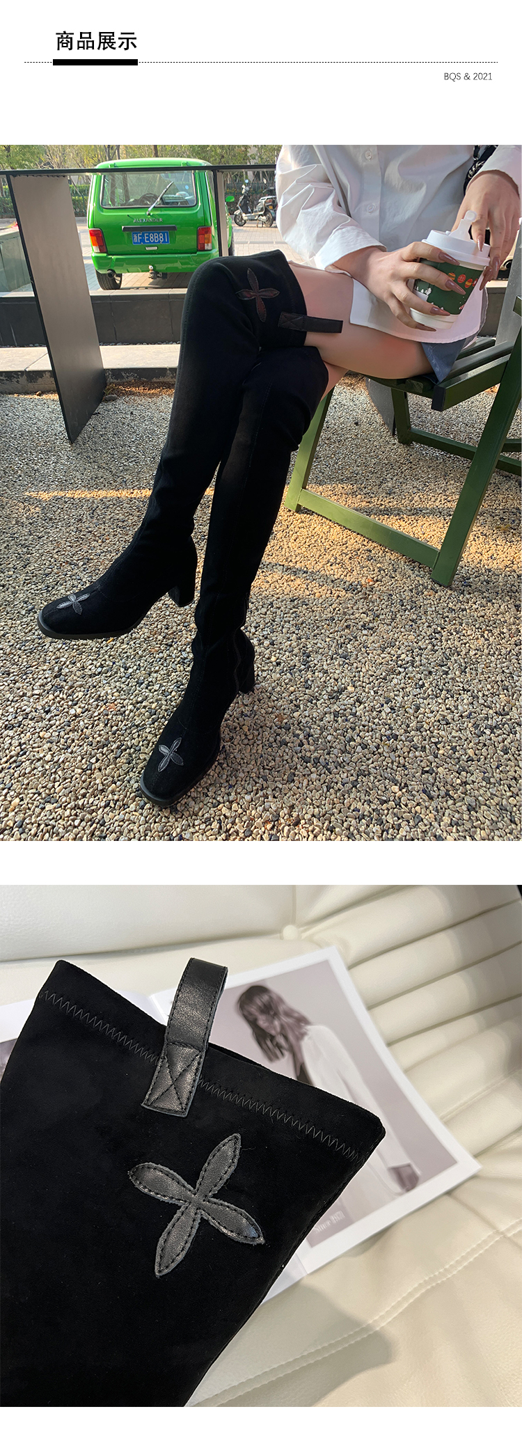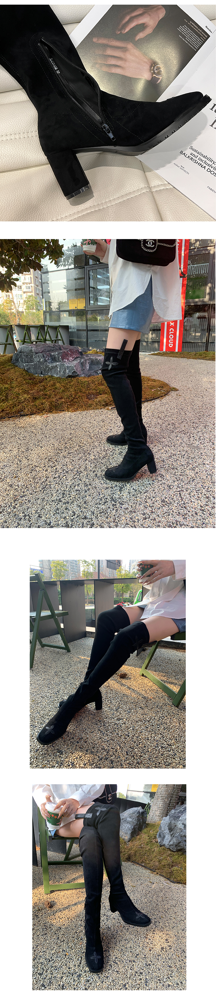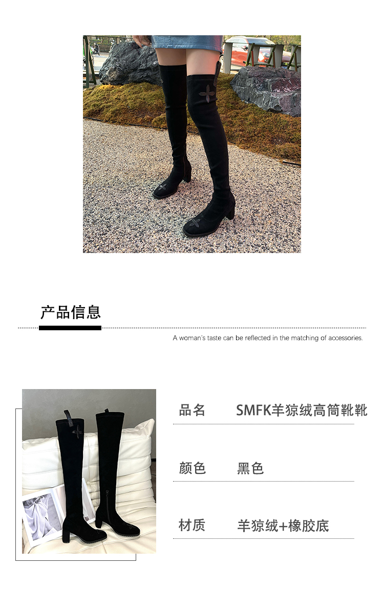 【大货孤品,不退不换】羊猄绒长靴过膝高筒靴粗跟 跟高7CM