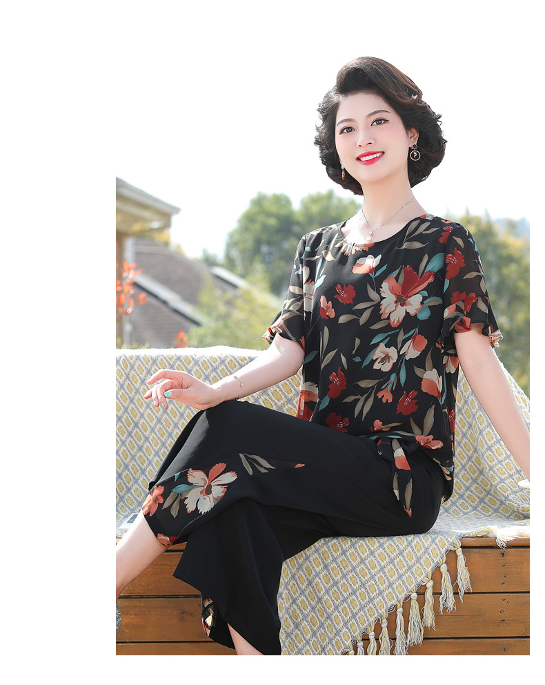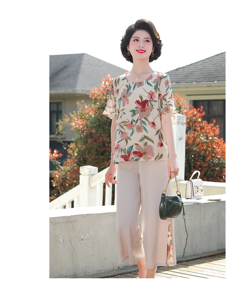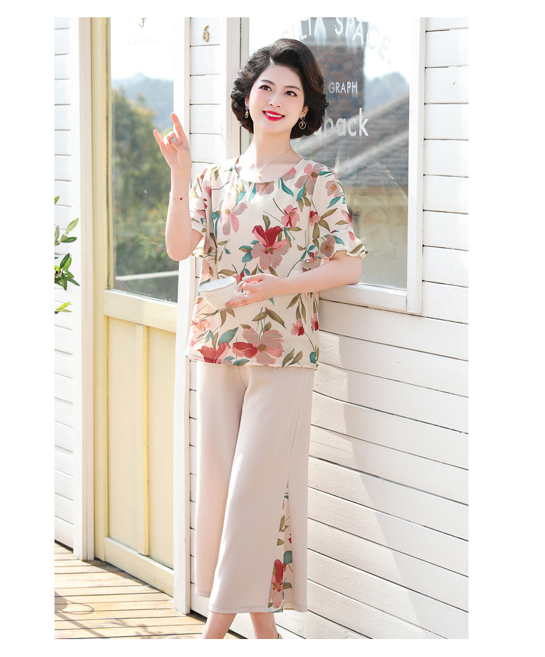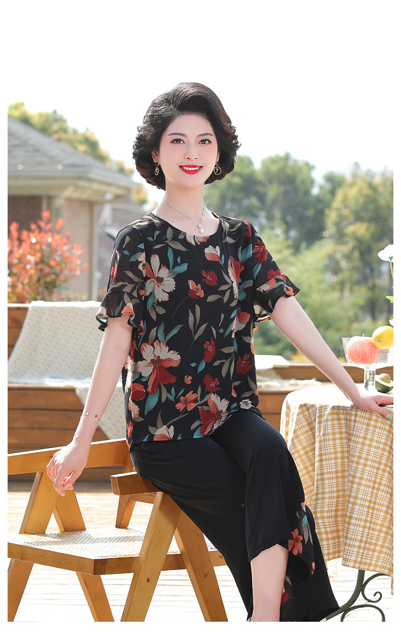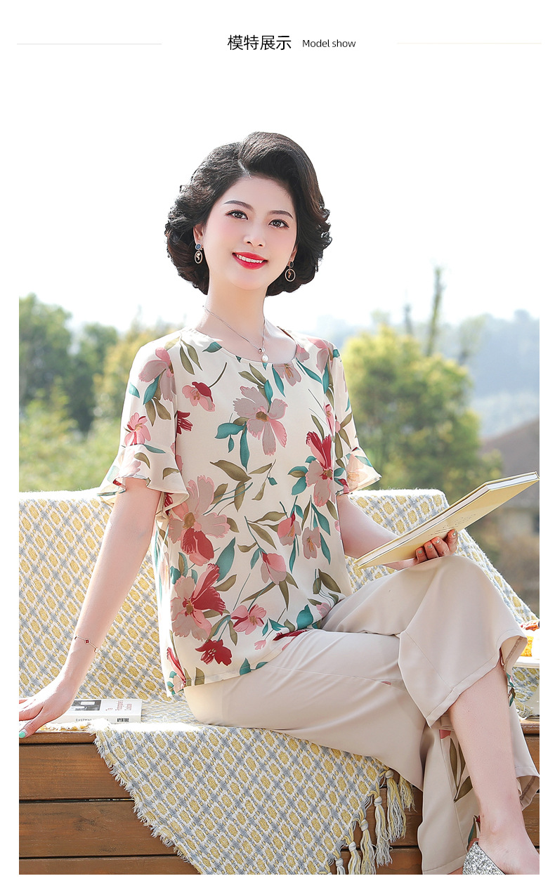 【气质妈妈夏装套装】雪纺衫女上衣,大码短袖T恤,洋气时尚。新款上架,让您焕发青春自信!