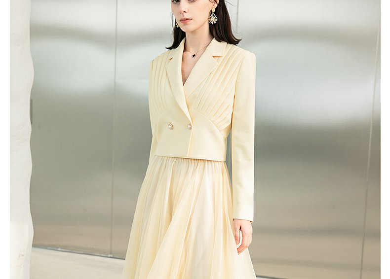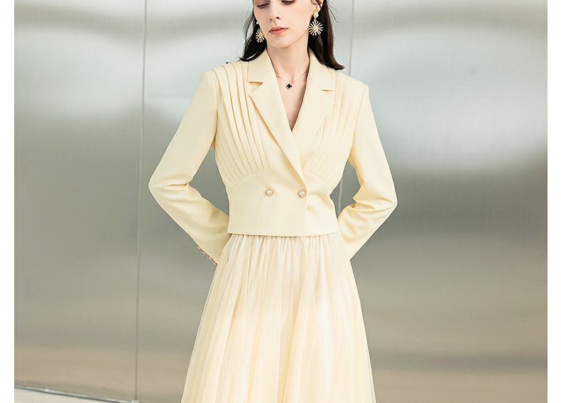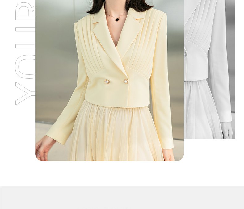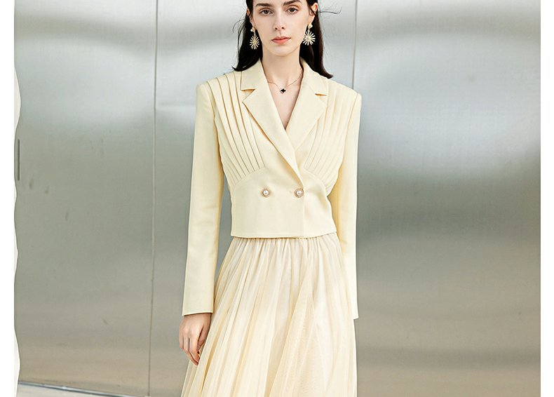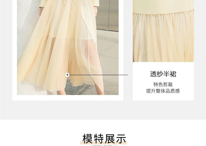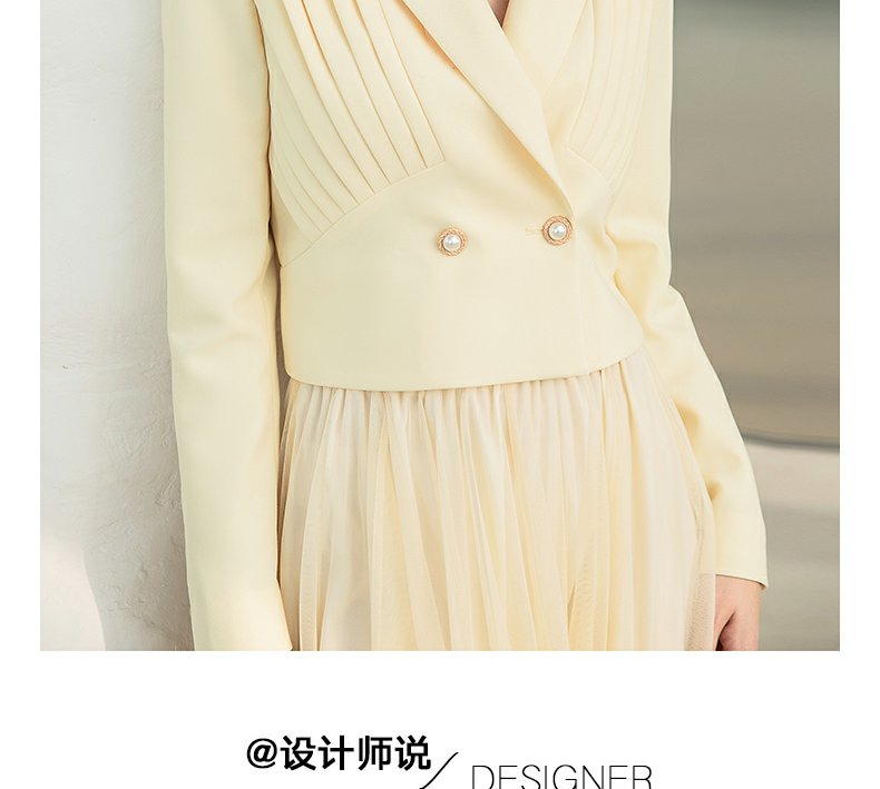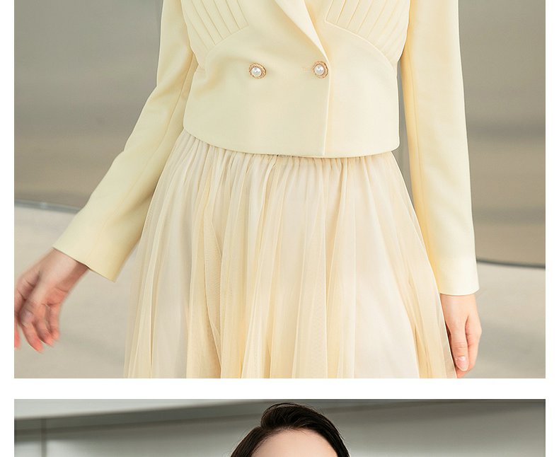 IWY/米色高级感职业套装女长袖套裙薄款西装新款纱裙通勤西服工装223162CS