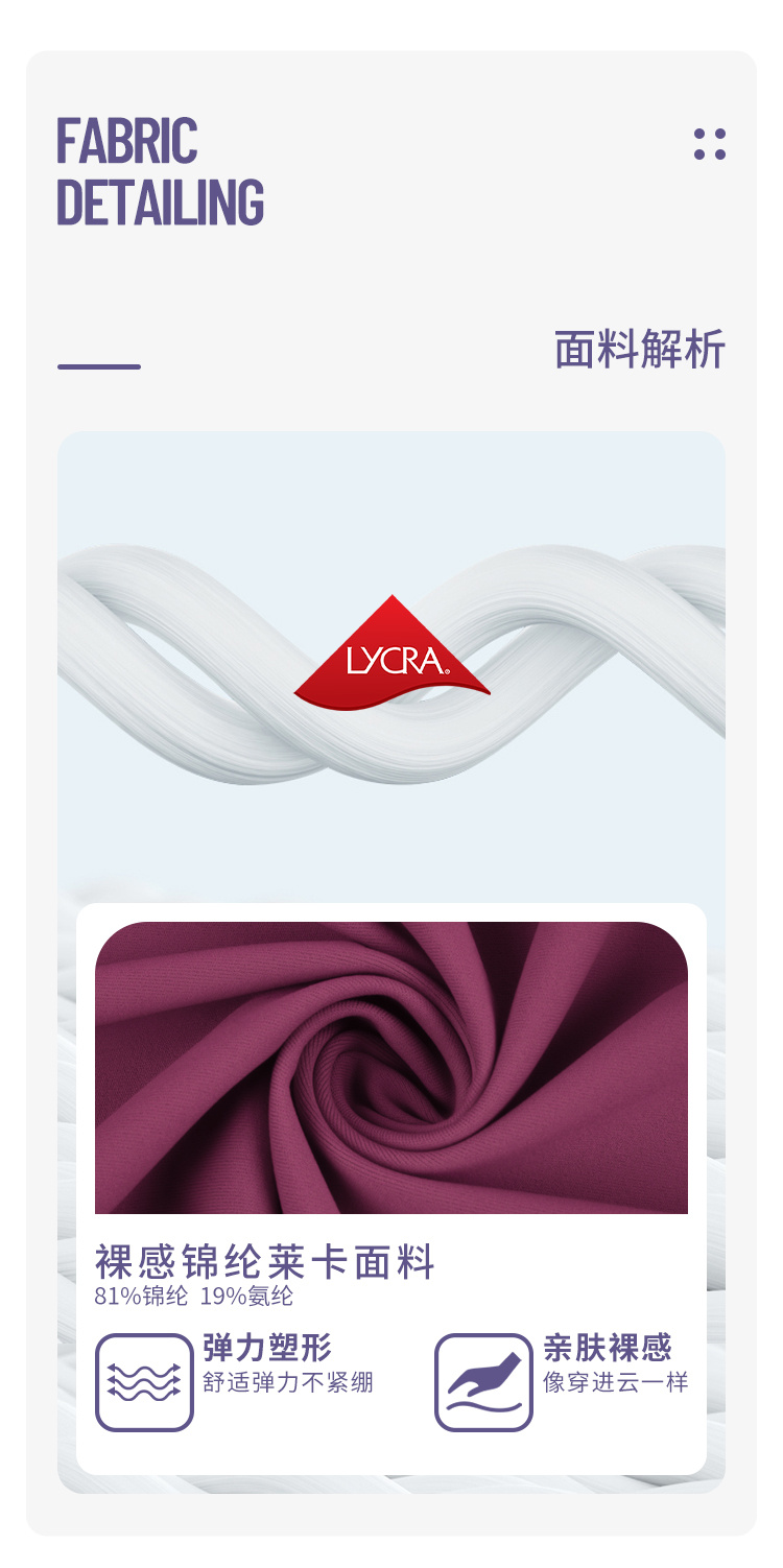 ✅采用裸感锦纶莱卡面料230g,吸湿透气,柔软亲肤,高弹不易变形。