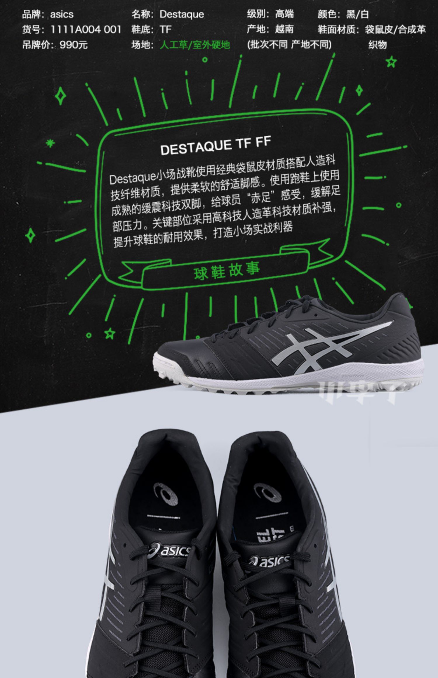 Asics/亚瑟士DESTAQUE 7 袋鼠皮TF碎钉成人训足球鞋男