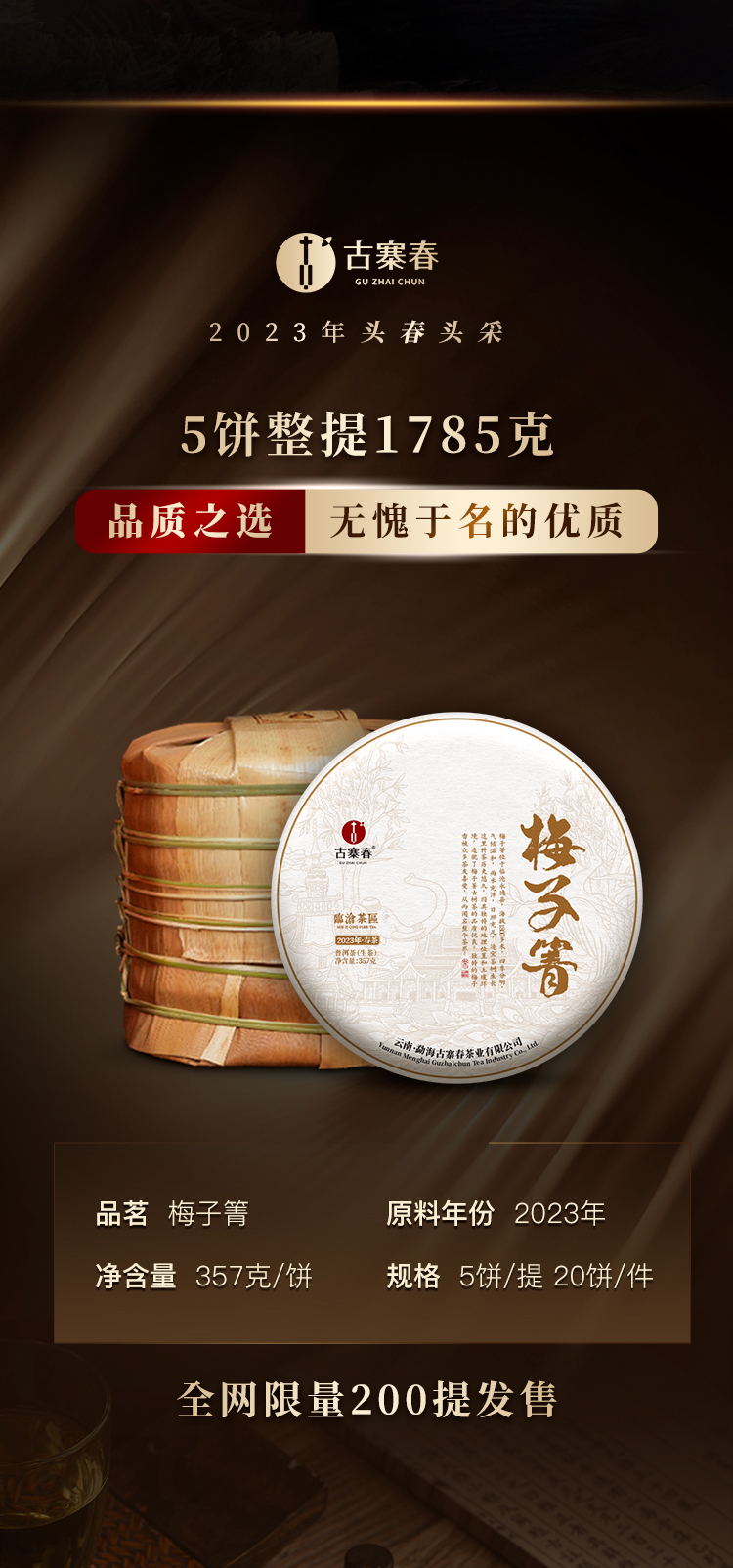 已售罄【梅子箐】2023年春茶‘ 喝了梅子箐忘了冰岛甜 ’ 云南临沧普洱茶生茶 357克/饼 一提5饼共1785克