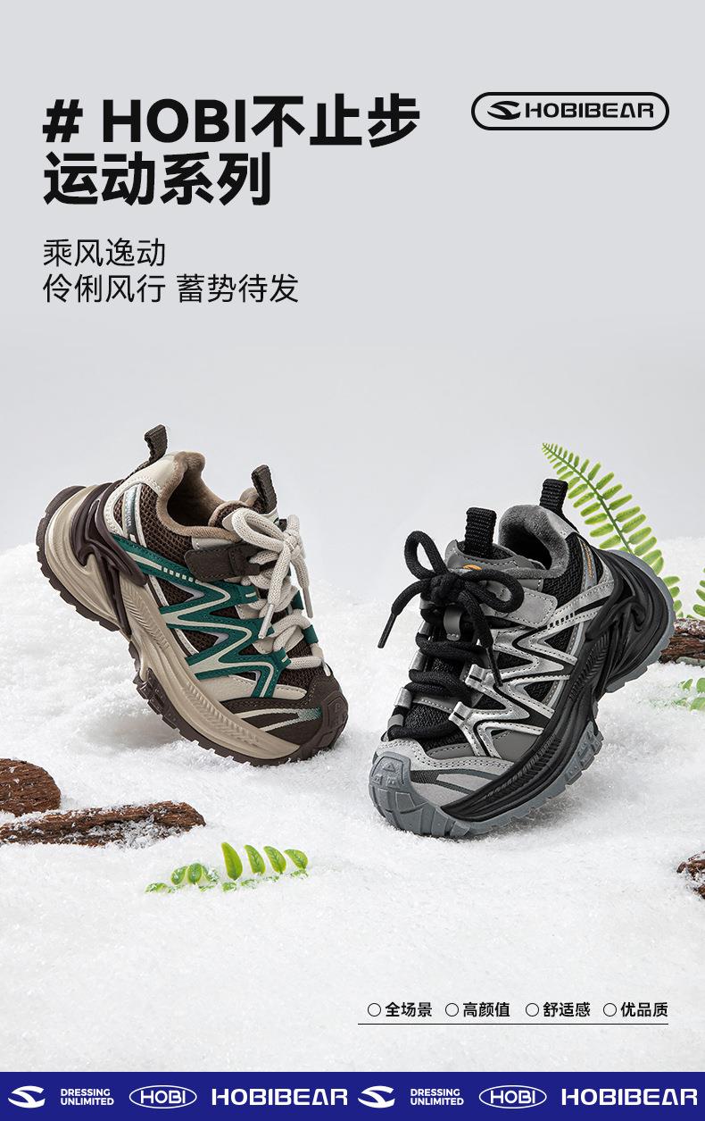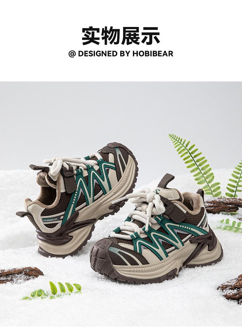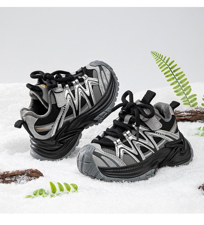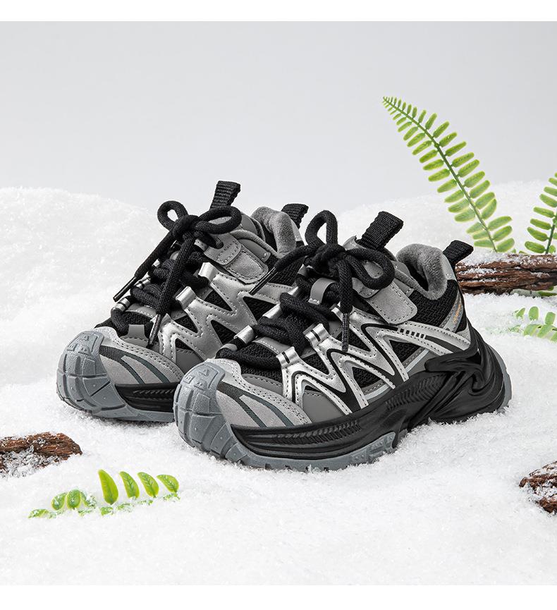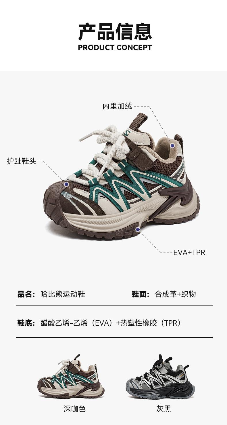 哈比熊加绒男童运动鞋冬季保暖老爹鞋中大童魔术贴休闲鞋