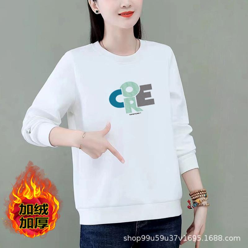 加绒棉质圆领宽松卫衣女式休闲运动衣显瘦时尚外套上衣字母印花