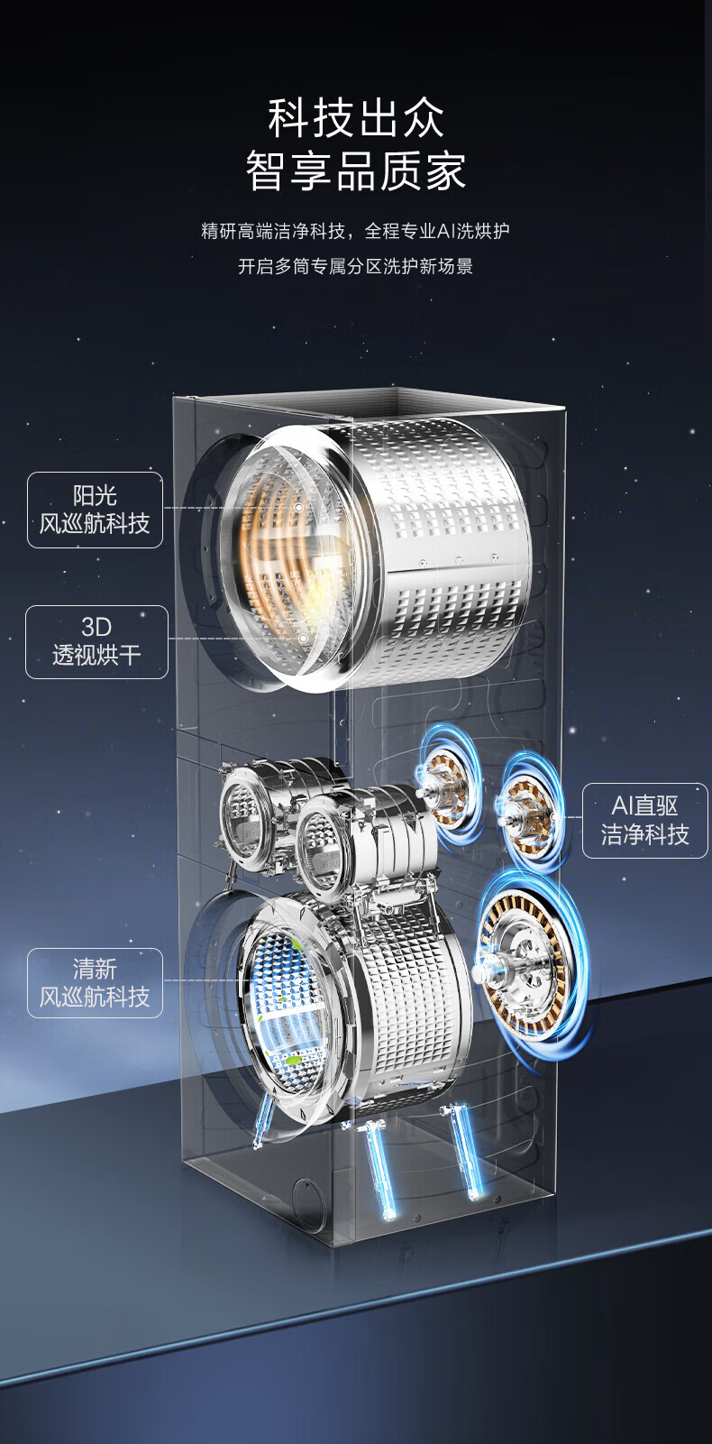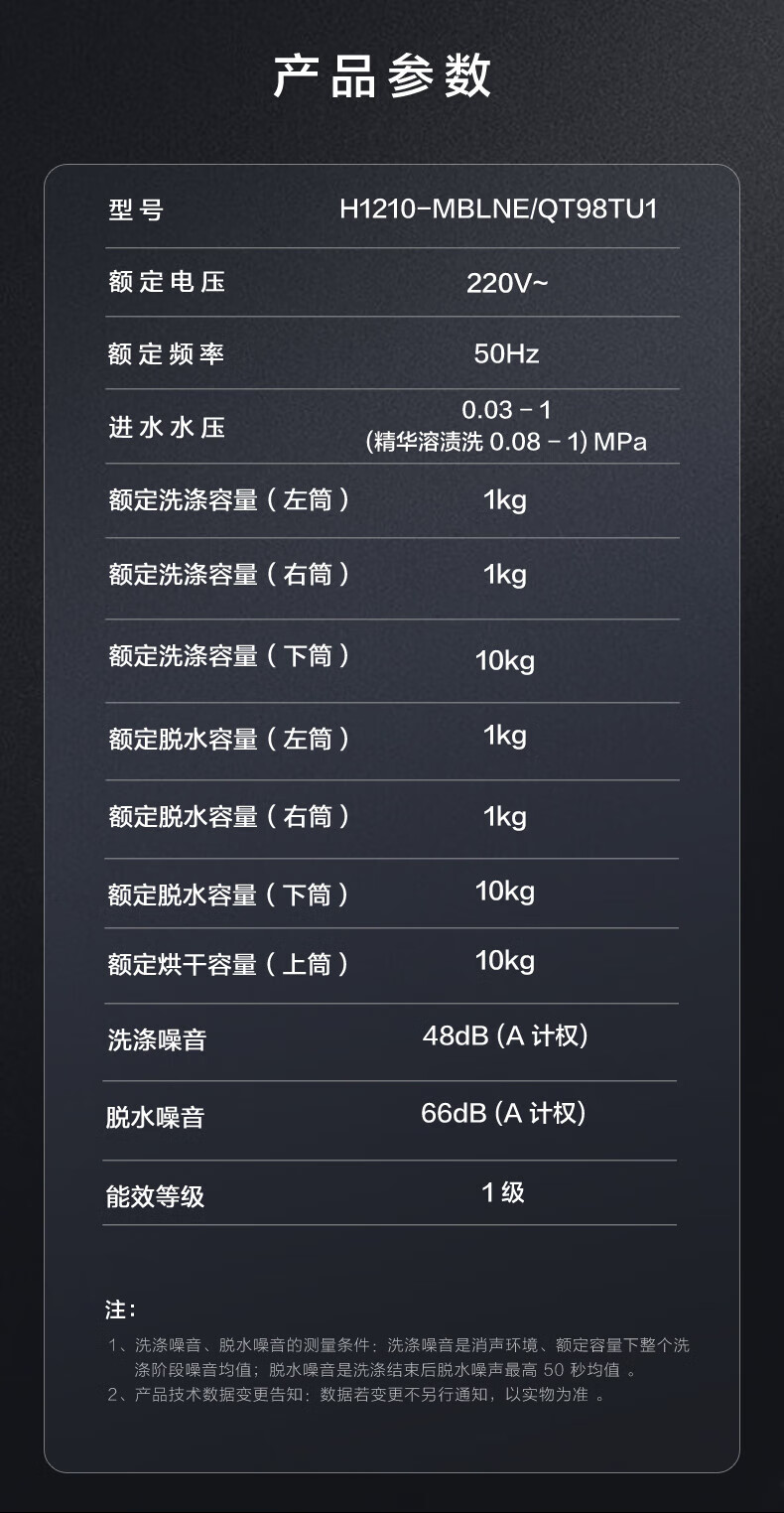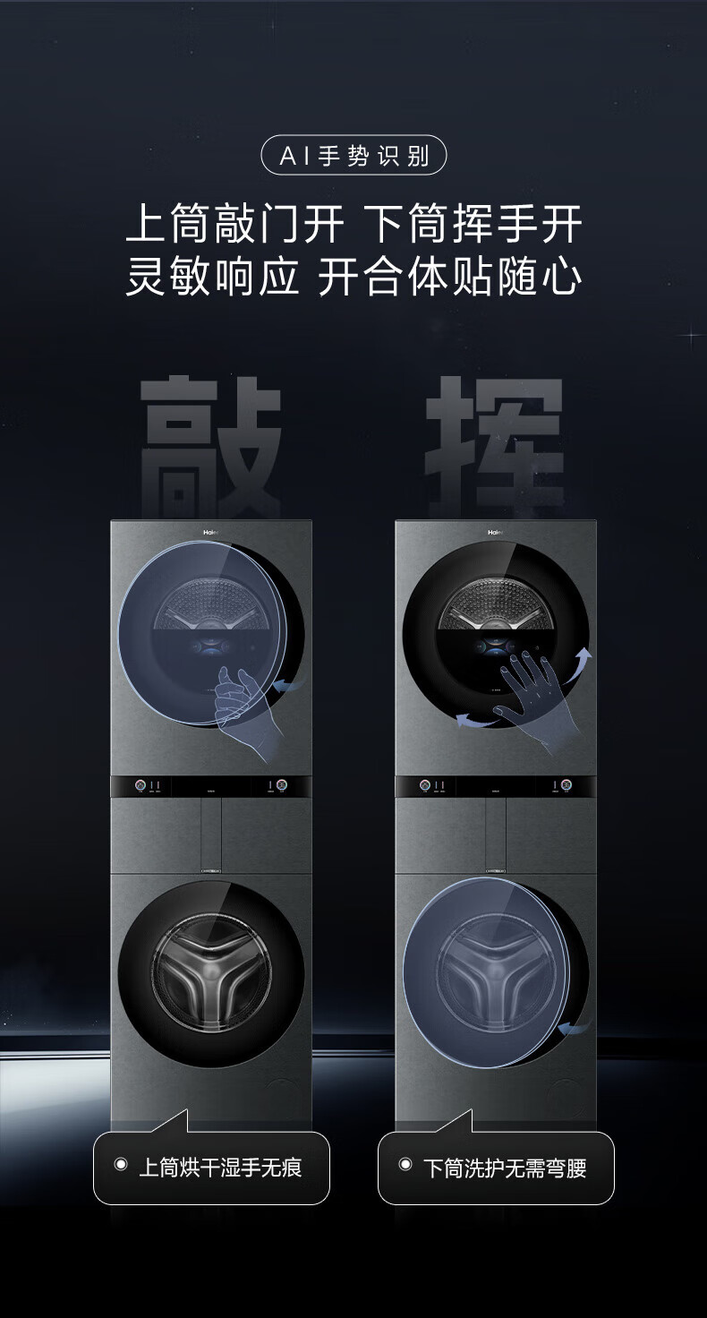 海尔融合洗护家 洗烘套装 首创四筒懒人多筒洗衣机 人感交互 净护精华洗 双擎三变频直驱 H1210-MBLNE/QT98TU1