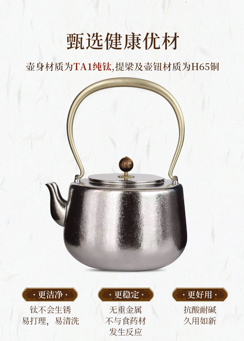 3、明火加热可能会导致壶体变色,这是钛材质独有的特性,非质量问题,请放心使用。