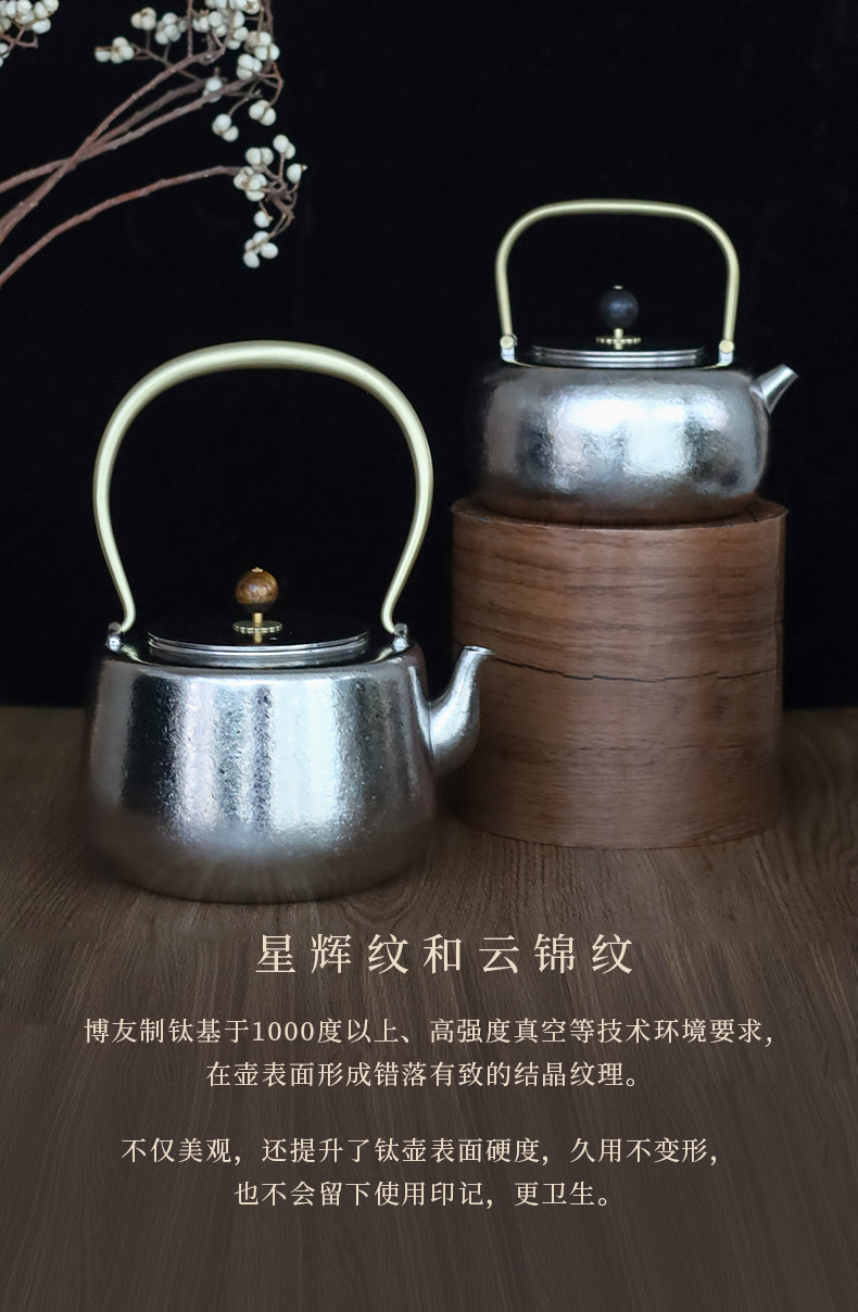 博友制钛 I 望月星辉纹提梁壶&小满云锦纹提梁壶,99.8%纯钛打造,烧水壶户外露营野营便携式茶壶