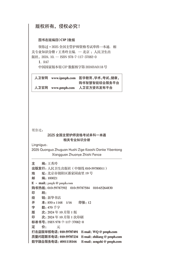 领你过:2025全国主管护师资格考试单科一本通 相关专业知识分册 主编 王秀玲 2025职称考试 9787117370820人民卫生出版社