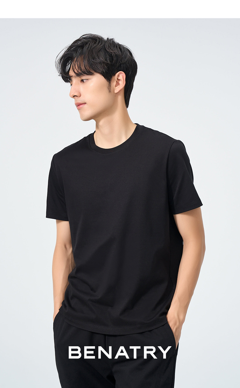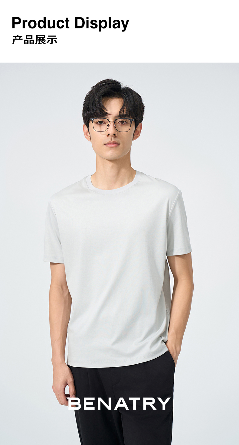 贝纳川纯色圆领短袖T恤ECT114010