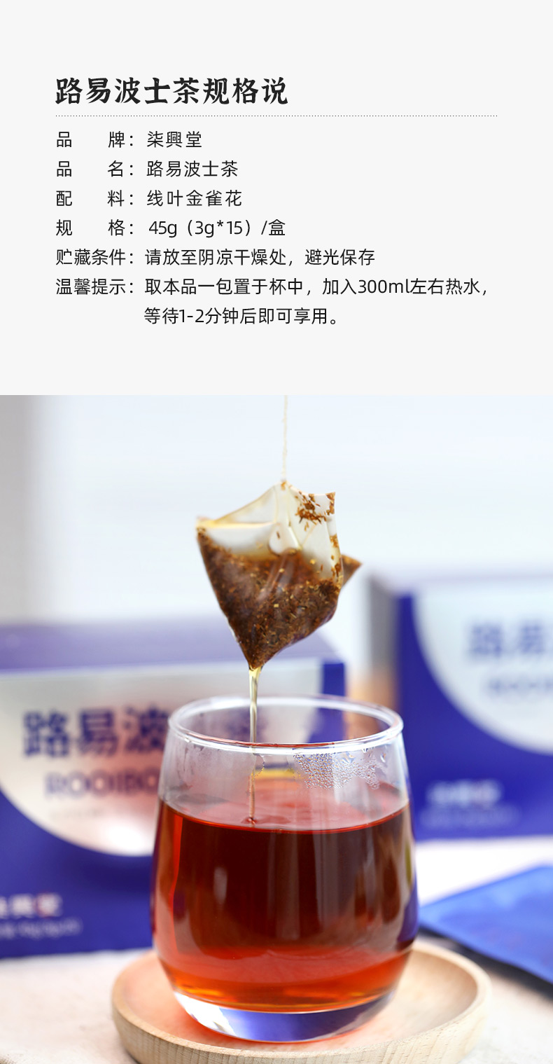 “南非三宝”之路易波士茶,自然植物饮品,日落后的好梦茶,好喝不含咖啡因 45g(3g*15)/盒