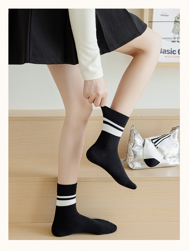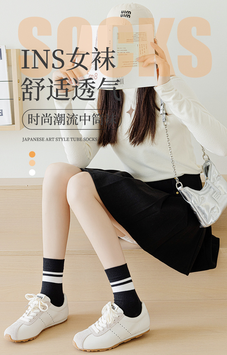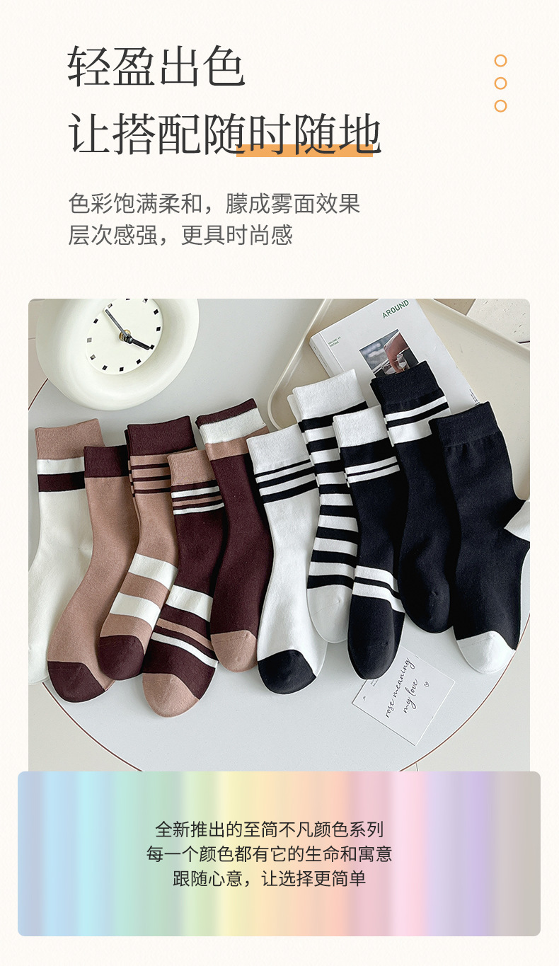 【舒适透气!时尚潮流中筒袜】袜子女时尚潮流中筒袜现货 ins潮吸汗透气柔软拼色中筒休闲长袜。ry