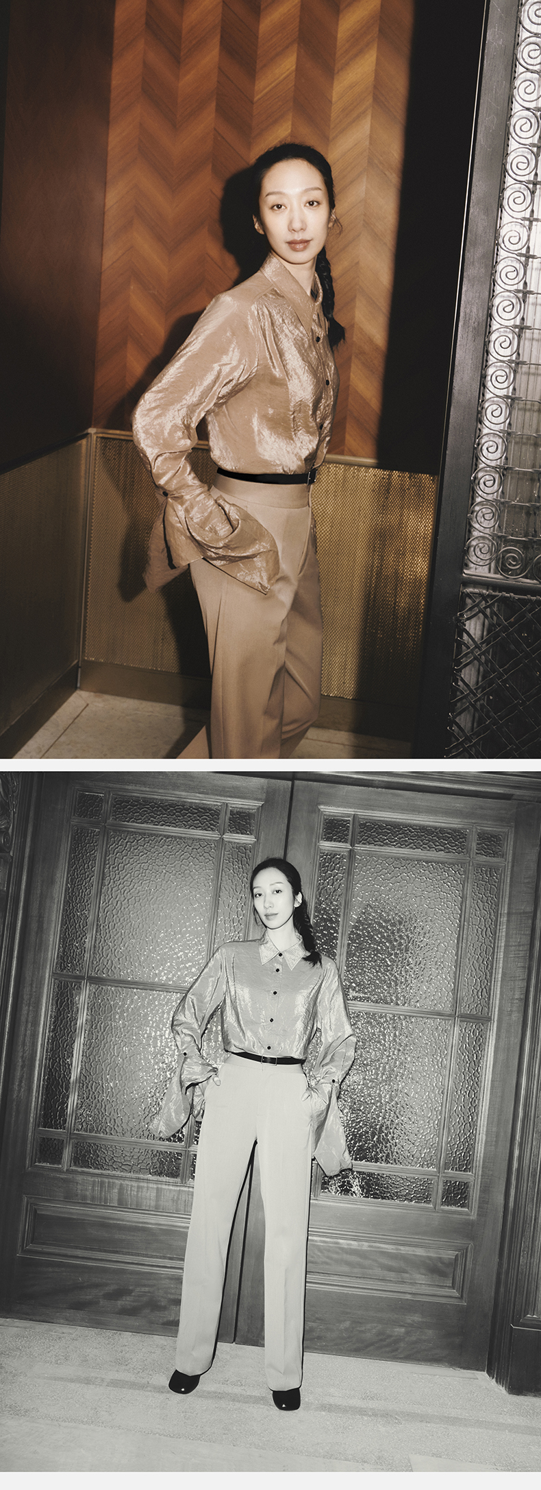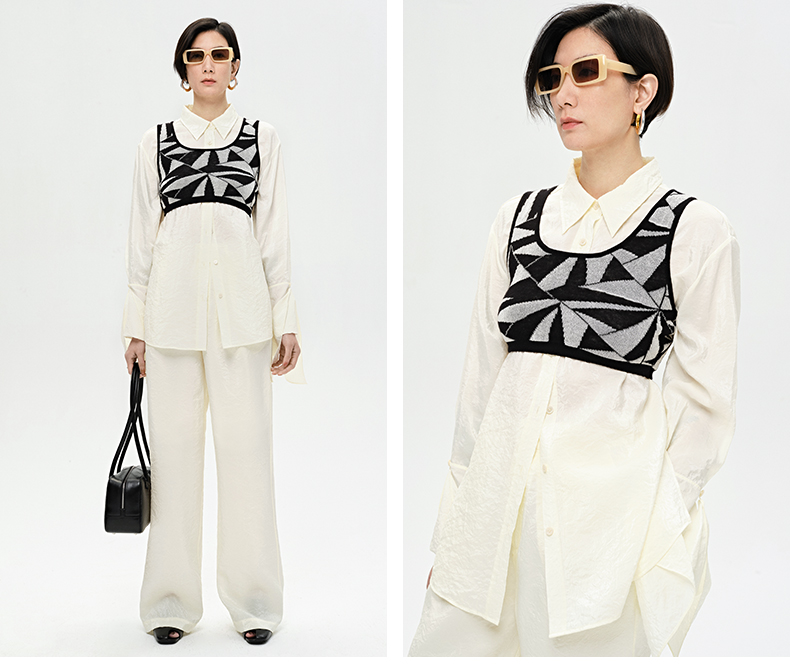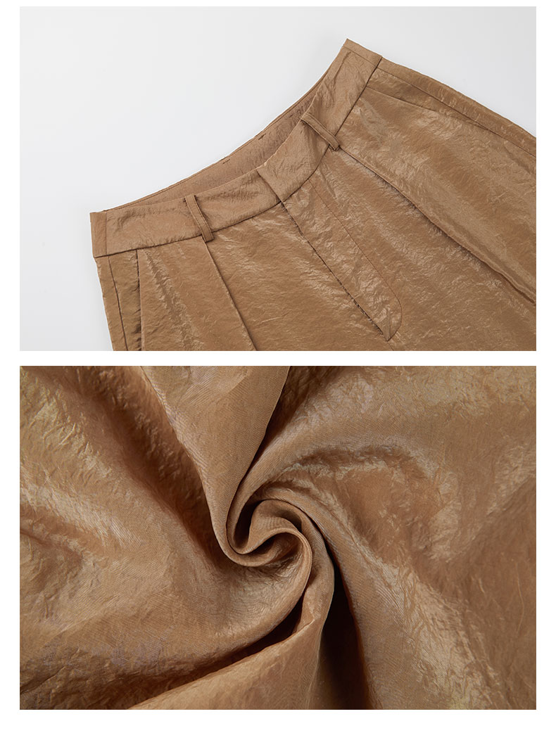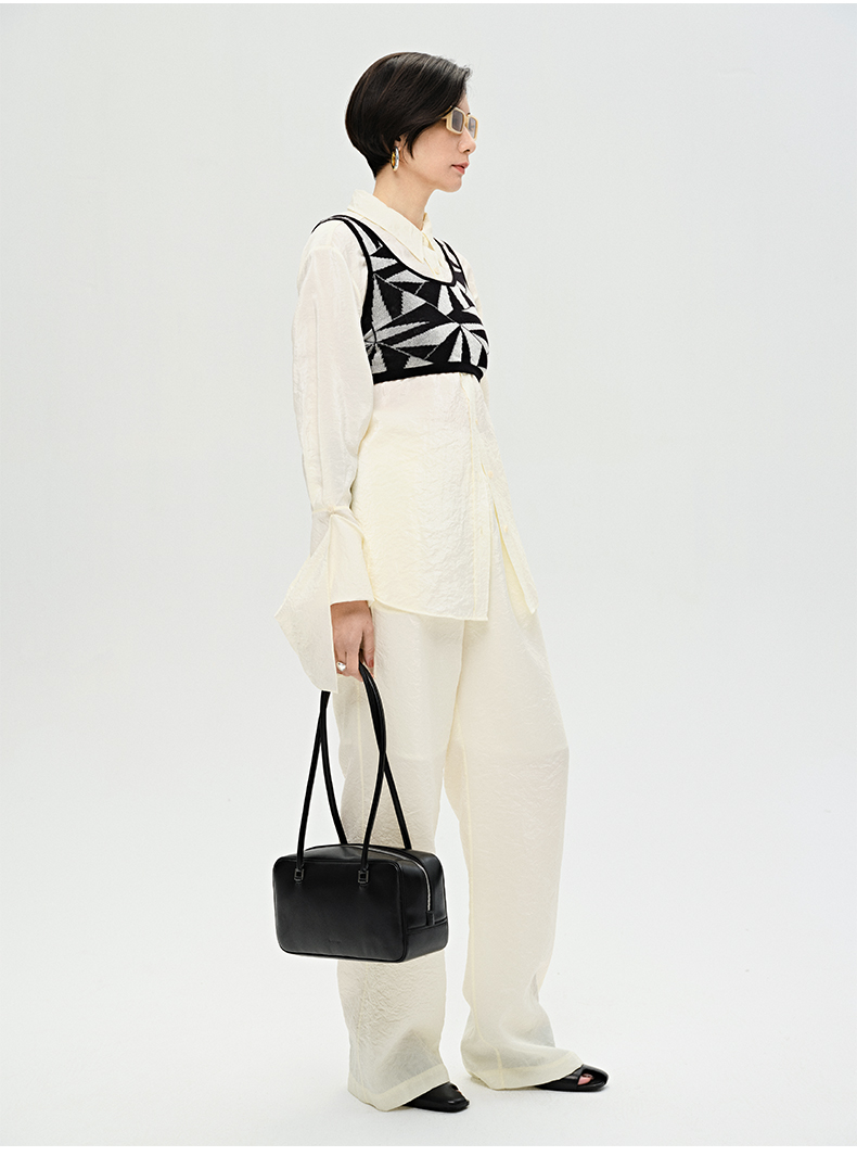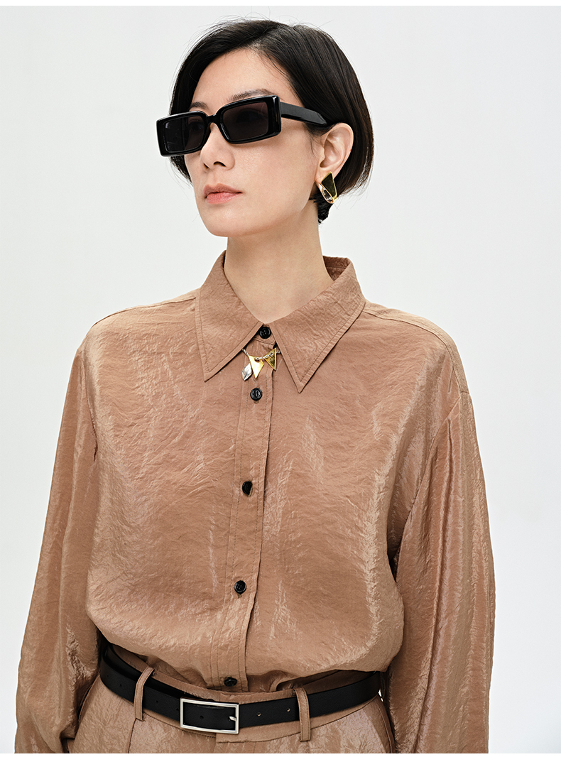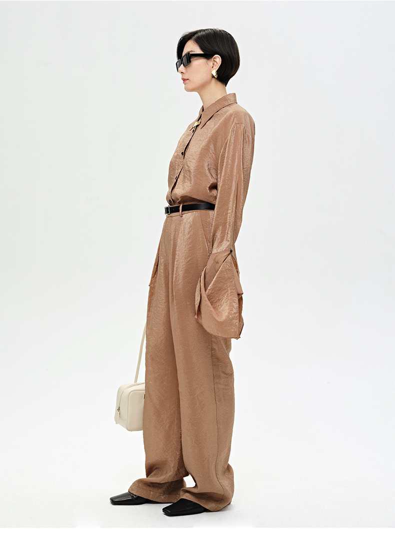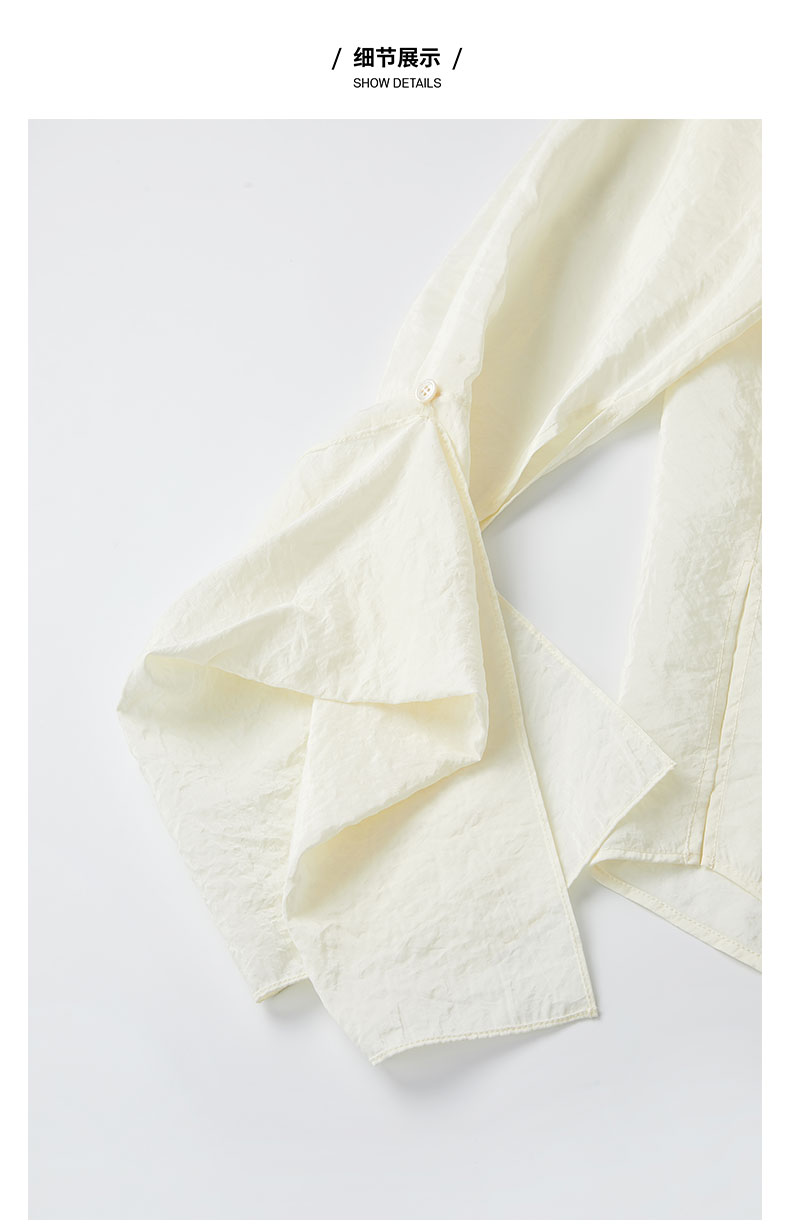HIDEMI 【麦子同款】极简设计感花苞堆堆袖衬衫垂顺亲肤缎感衬衫套装 衬衫/长裤 乳白色/饼干色