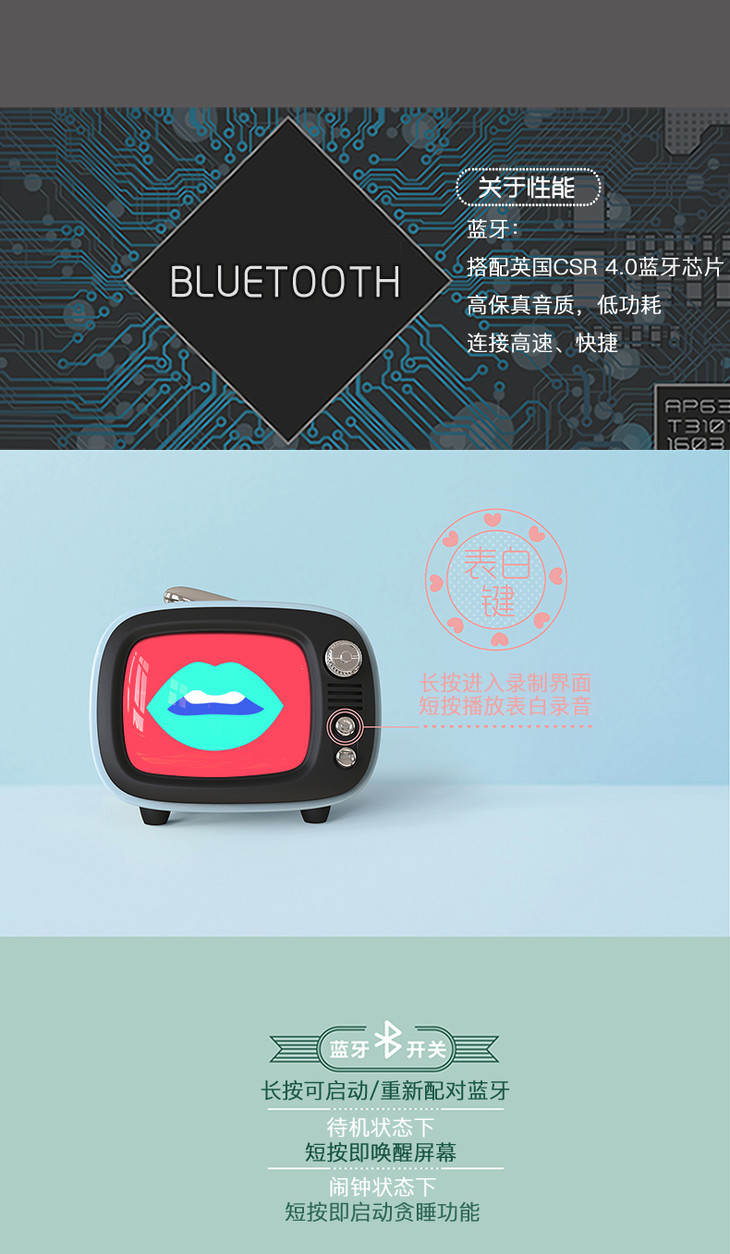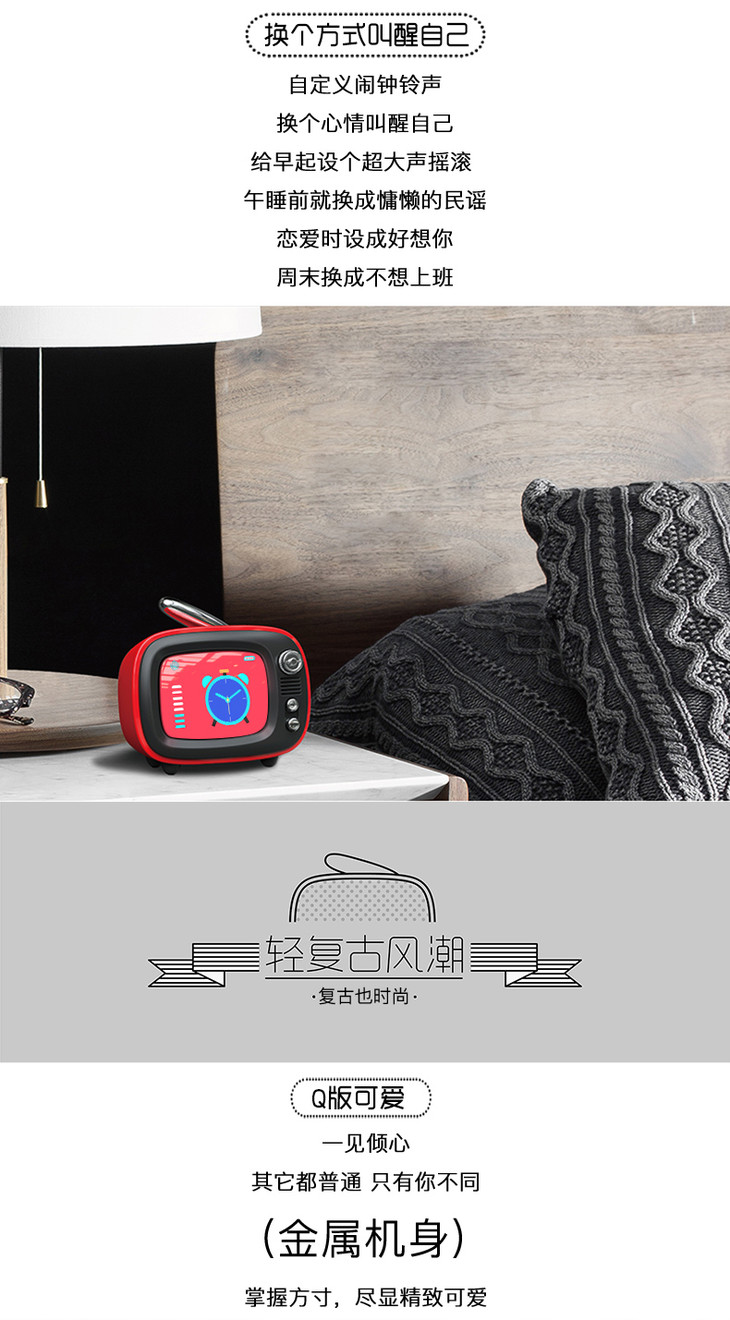 LOFREE/洛斐TV 迷你蓝牙音箱无线便携踢了个威闹钟低音小音响洛菲电视复古可爱女生抖音生日表白礼物家用车载