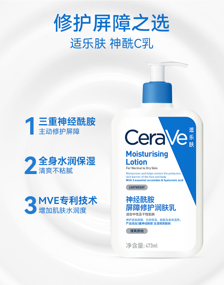 Cerave适乐肤神经酰胺屏障修护润肤乳/修护保湿润肤乳 473ml (C乳)保湿不粘腻 舒缓修护