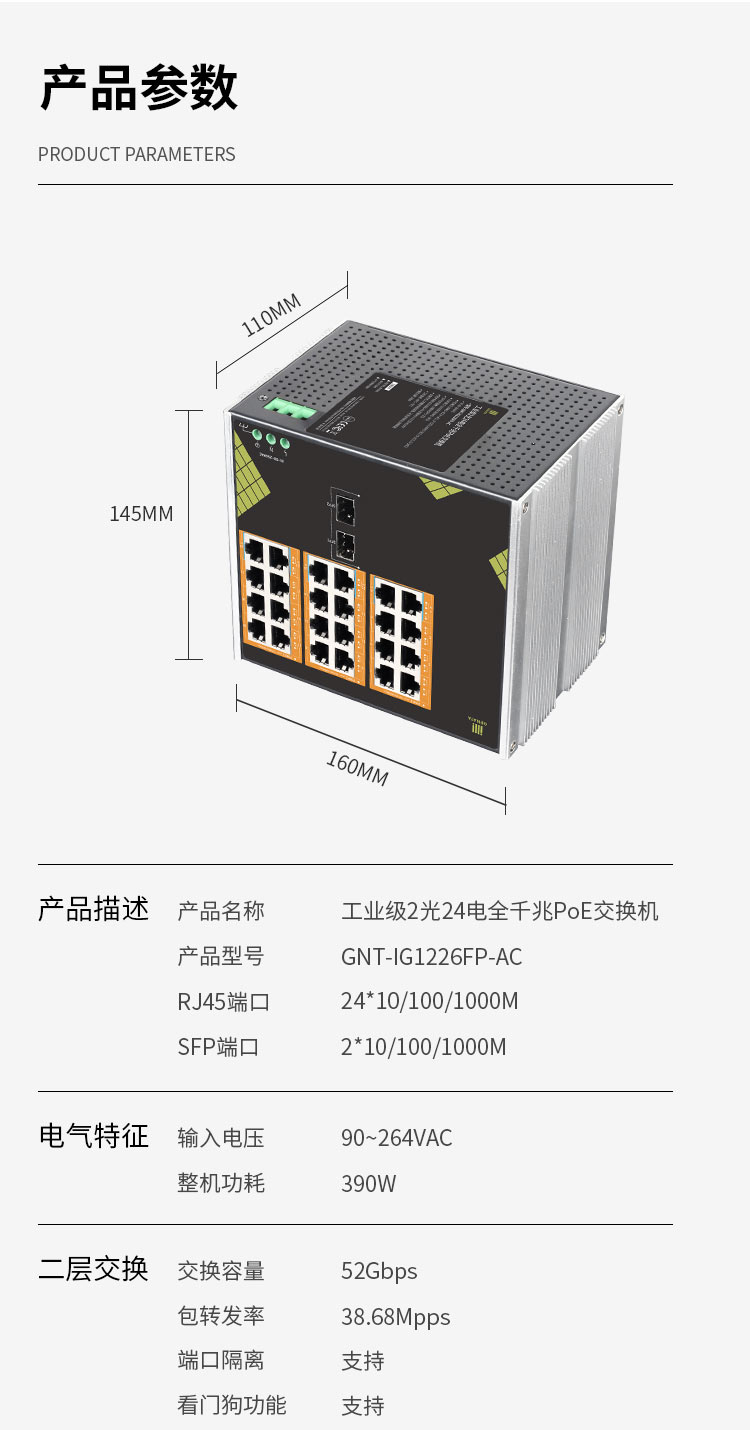 工业级2光24电全千兆POE交换机 IG1226FP-AC