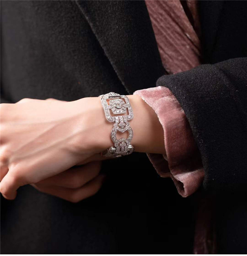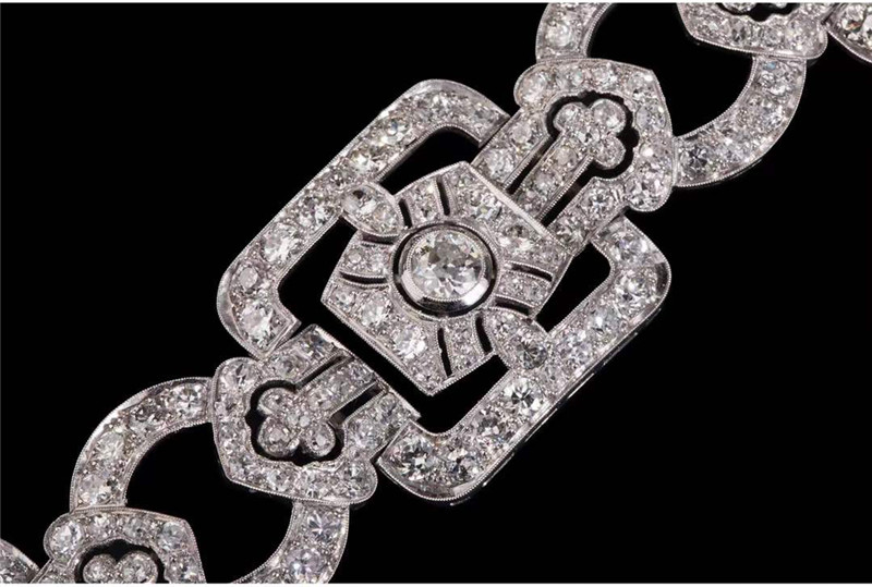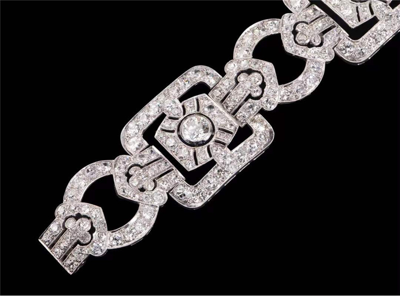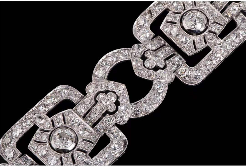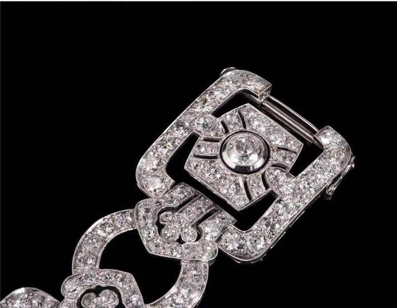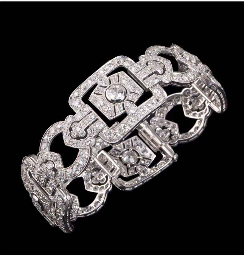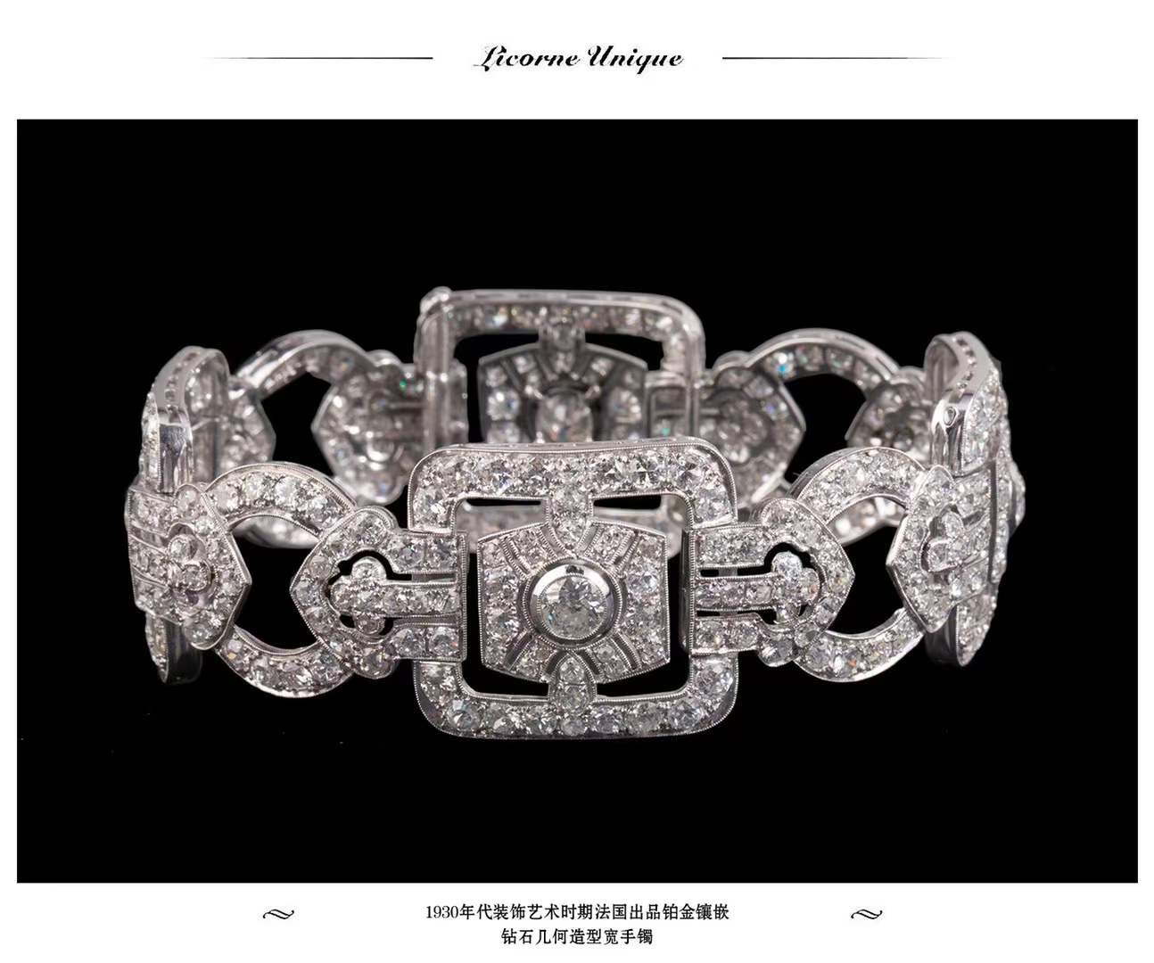 独角鹿西洋古董珠宝法国装饰艺术时期铂金镶嵌钻石几何造型宽手镯
