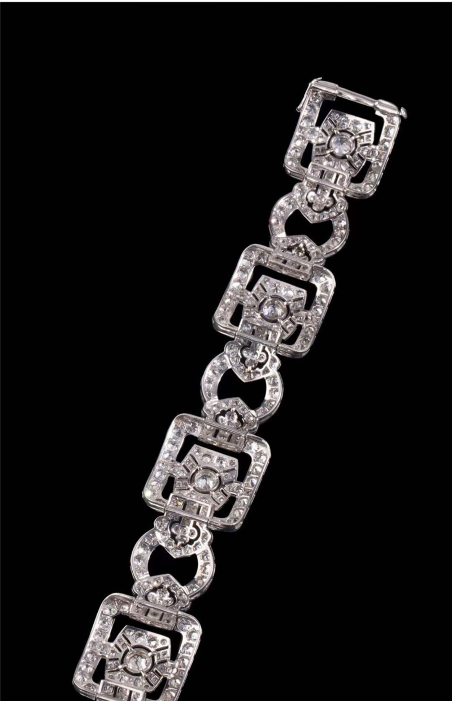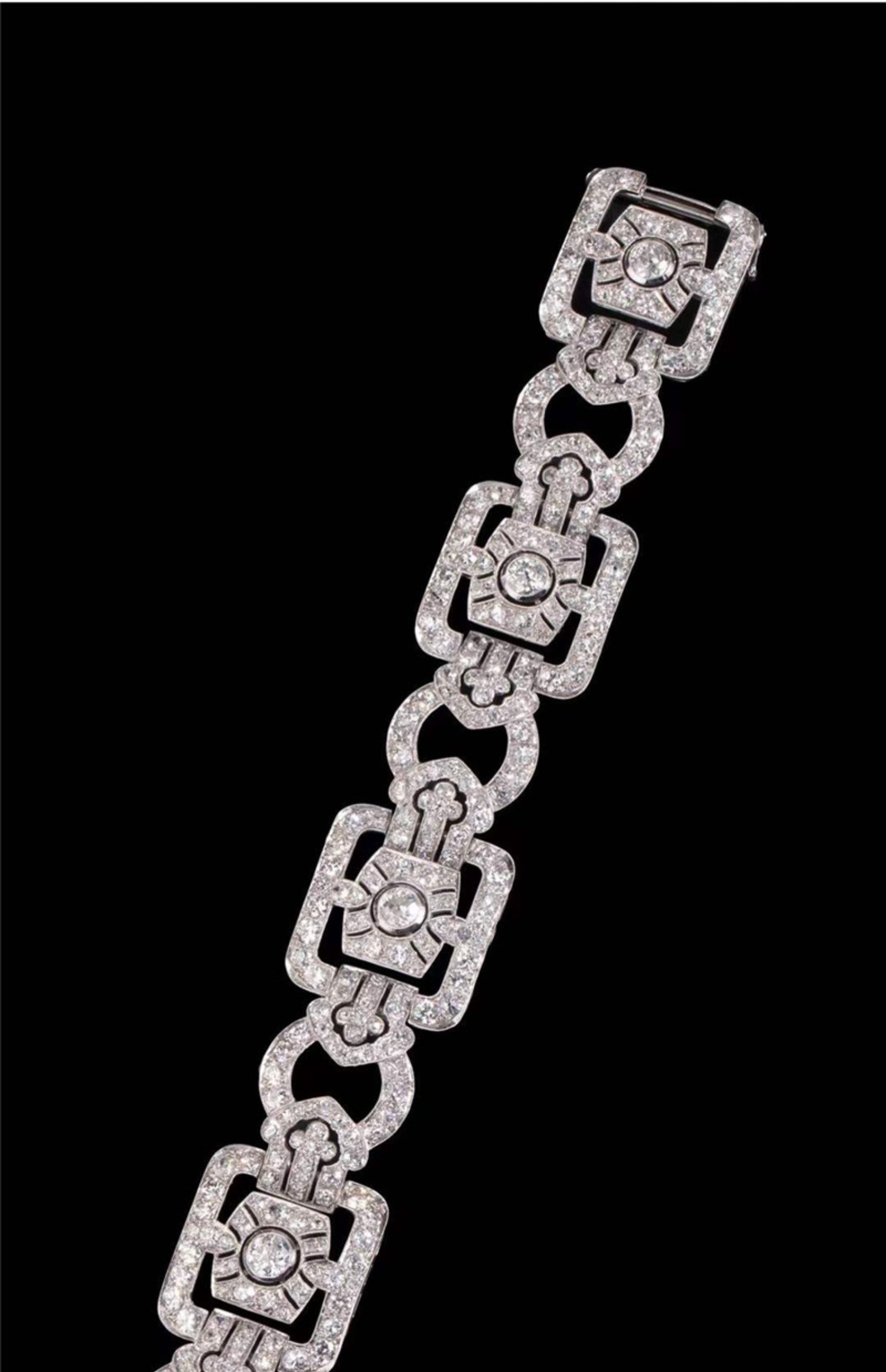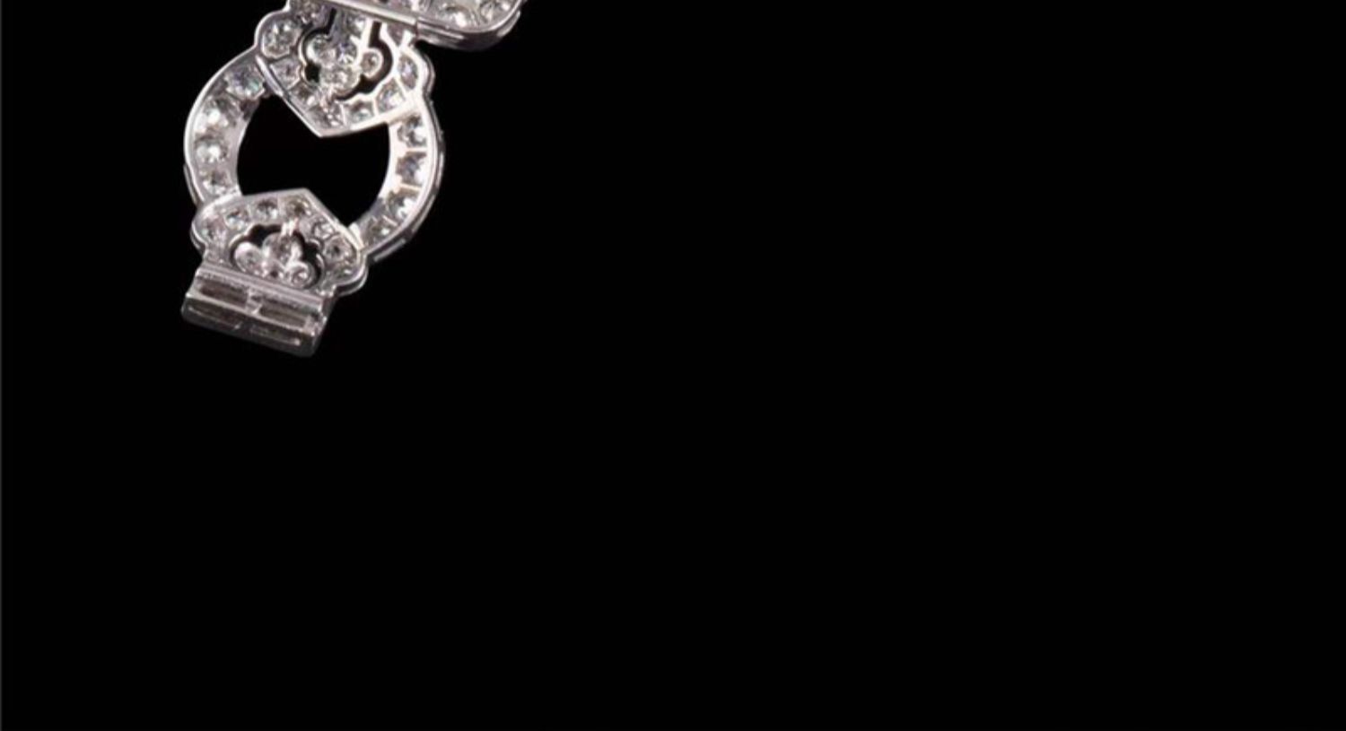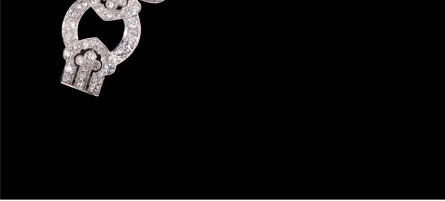 独角鹿西洋古董珠宝法国装饰艺术时期铂金镶嵌钻石几何造型宽手镯