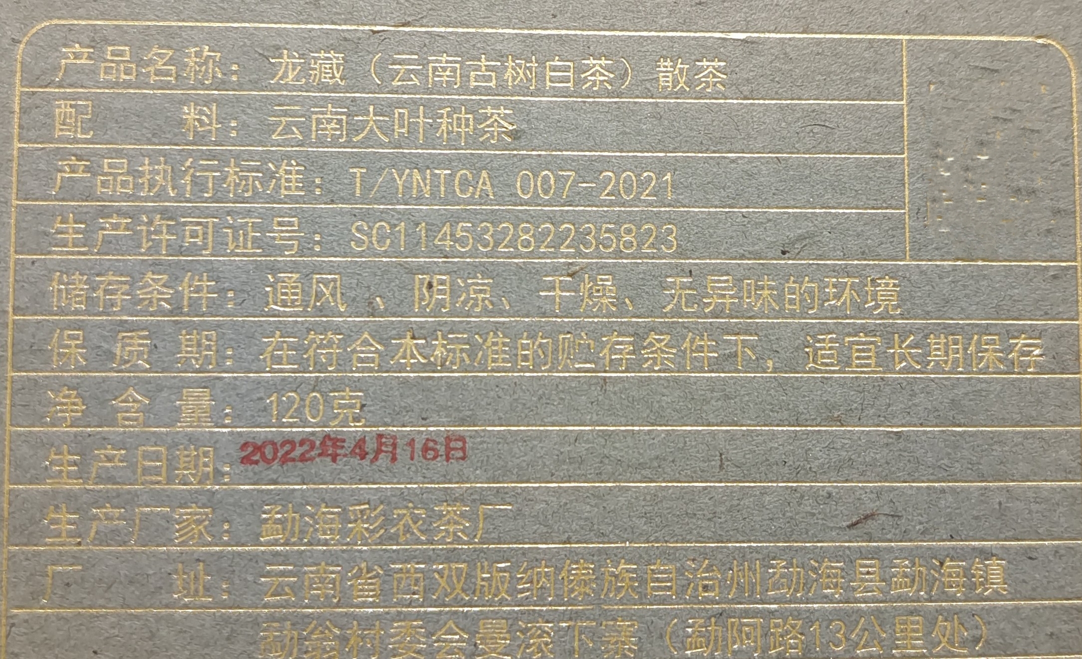 品名:彩农茶|2022春龙藏布朗古树白茶