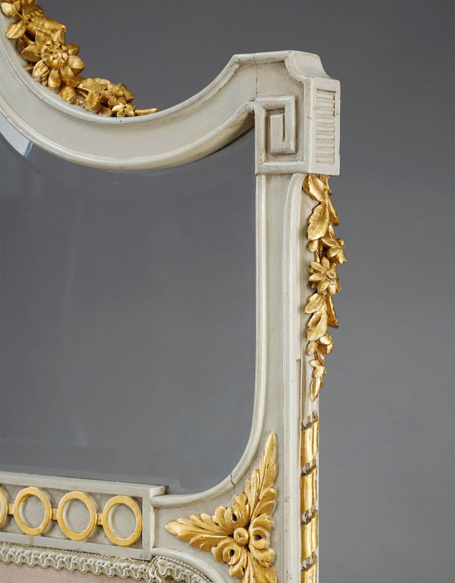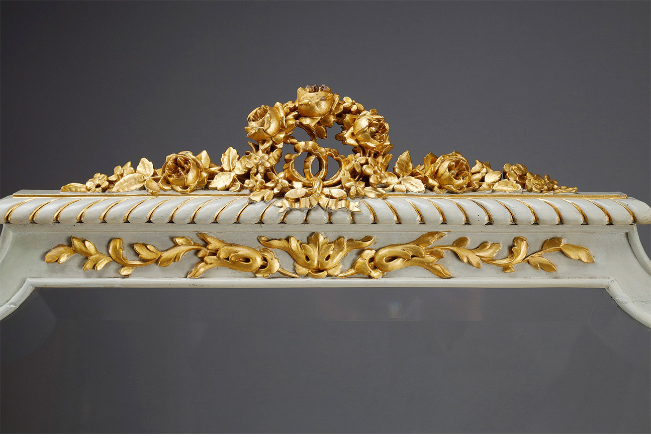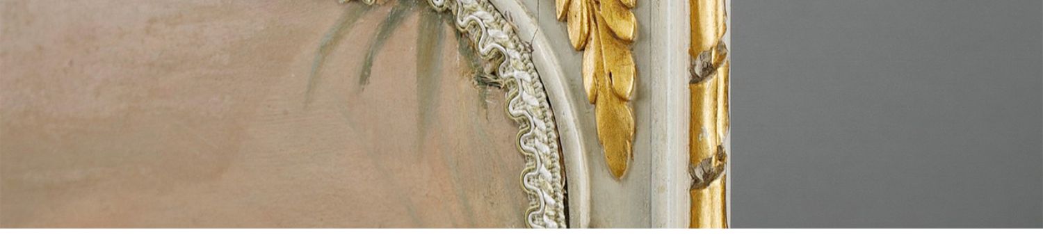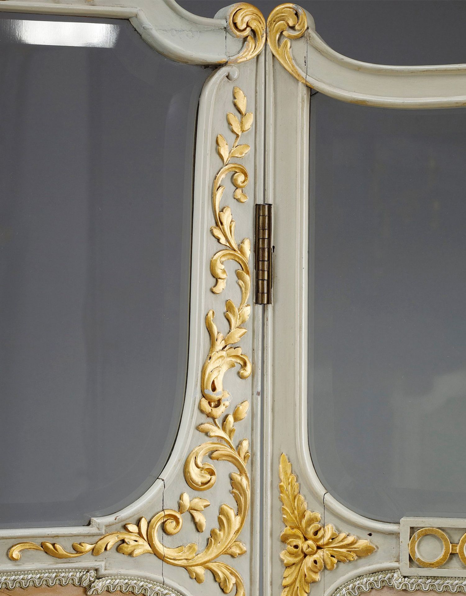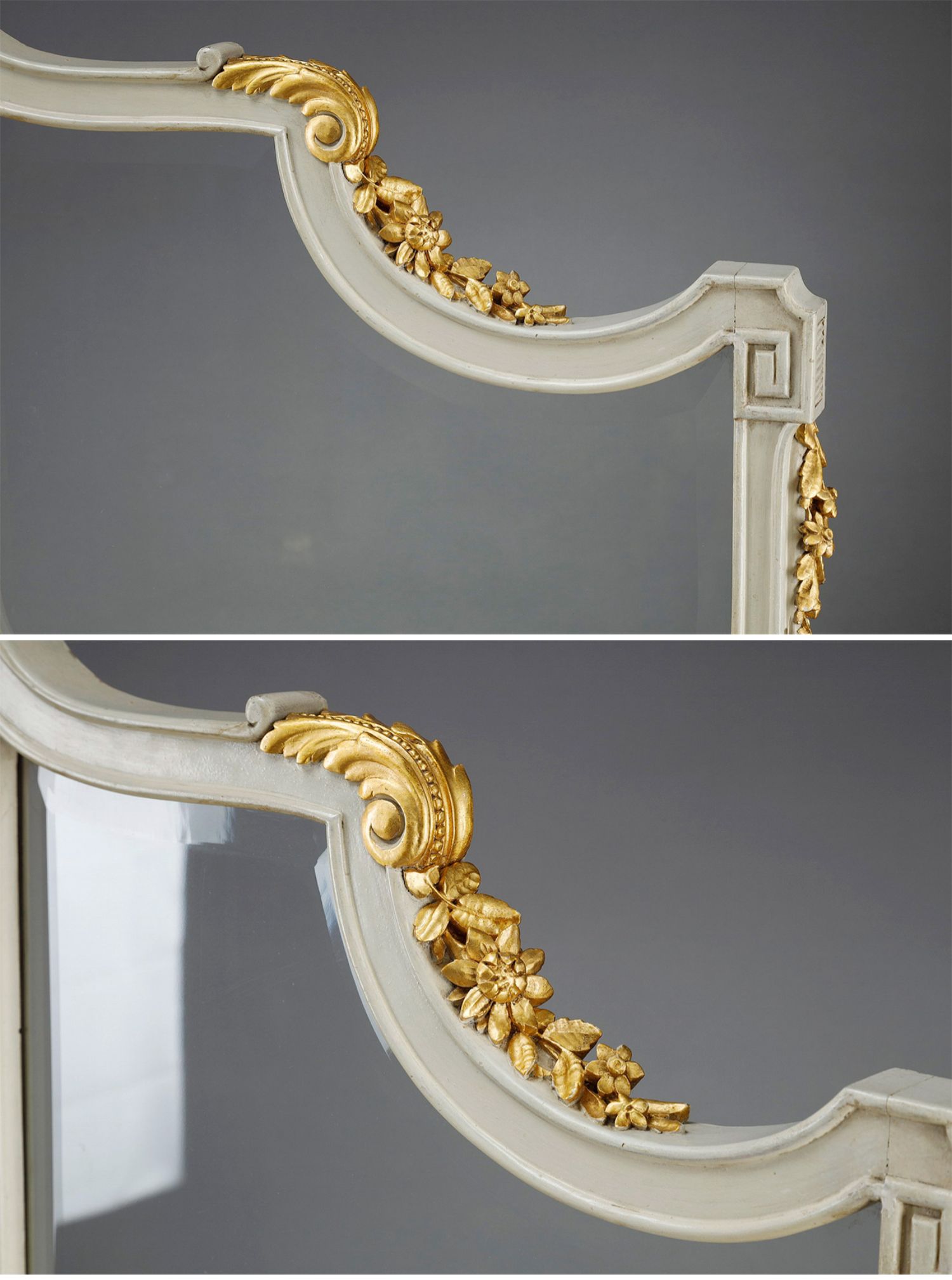独角鹿西洋古董玻璃修漆木鎏金雕花边框水岸鸟鹤布面手绘三页屏风