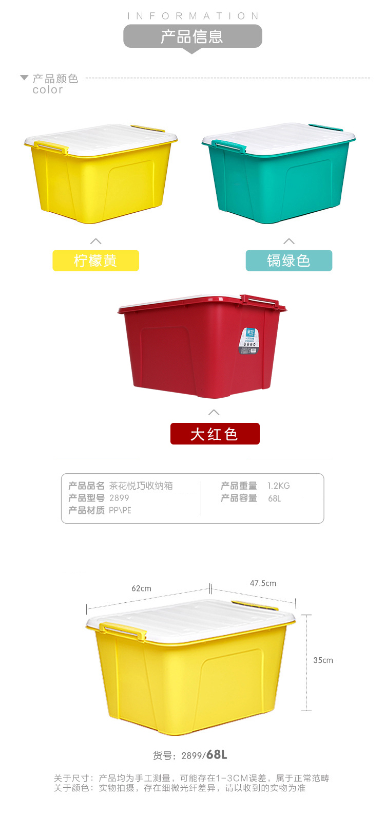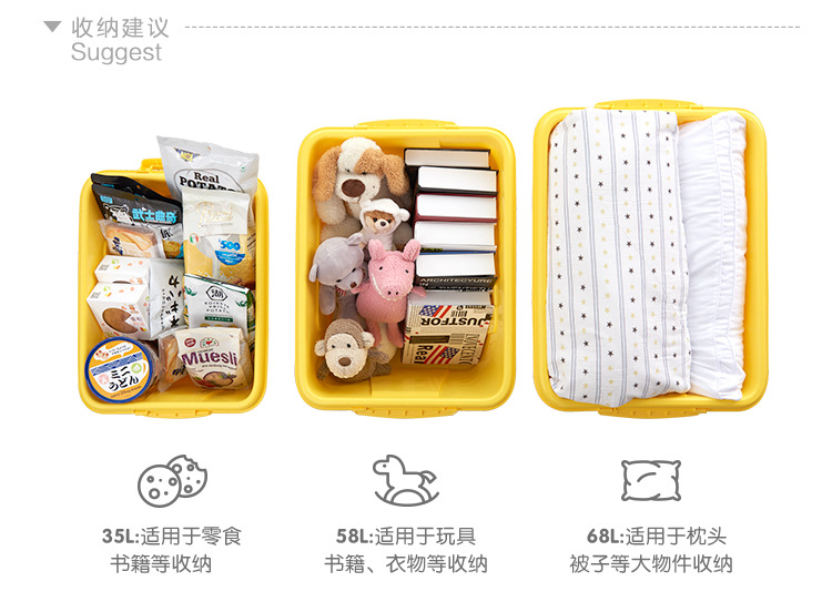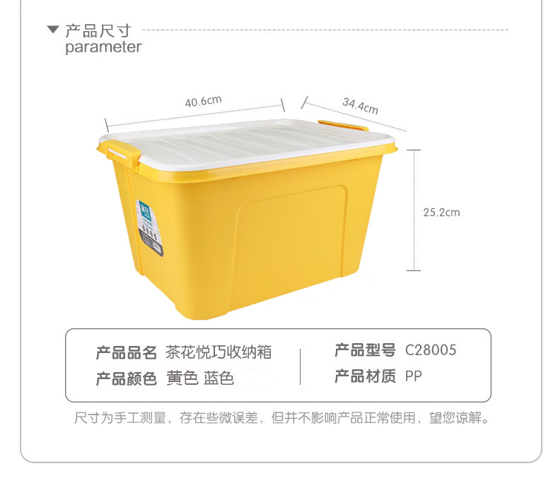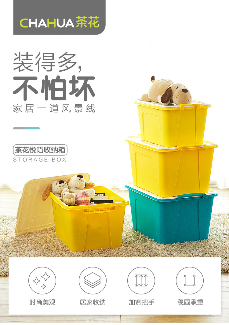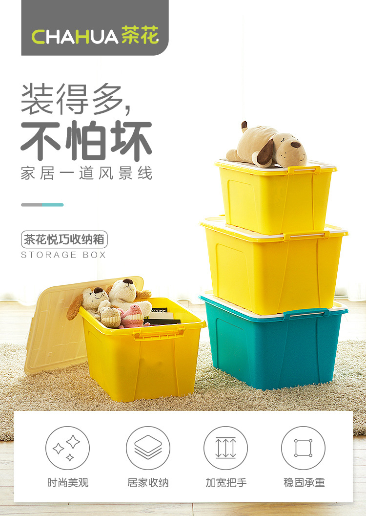 茶花 悦巧收纳箱25L58L68L大容量衣服收纳盒有盖零食玩具整理箱衣物书籍杂物储物箱